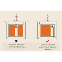 Комплектация: мойка, панель со смесителем, краном для питьевой воды ополаскивателем стакана, разделочная доска из дерева, комплект для установки;