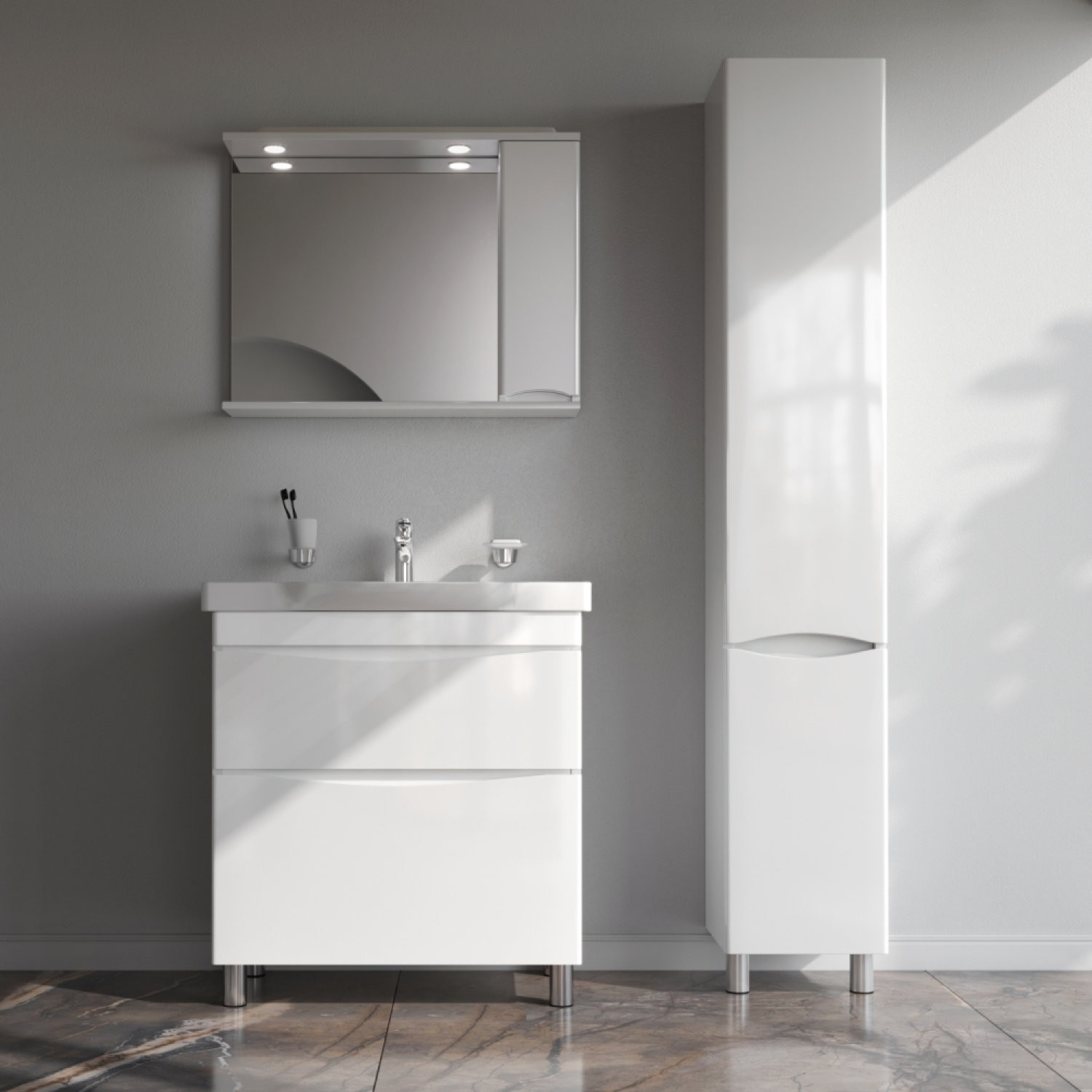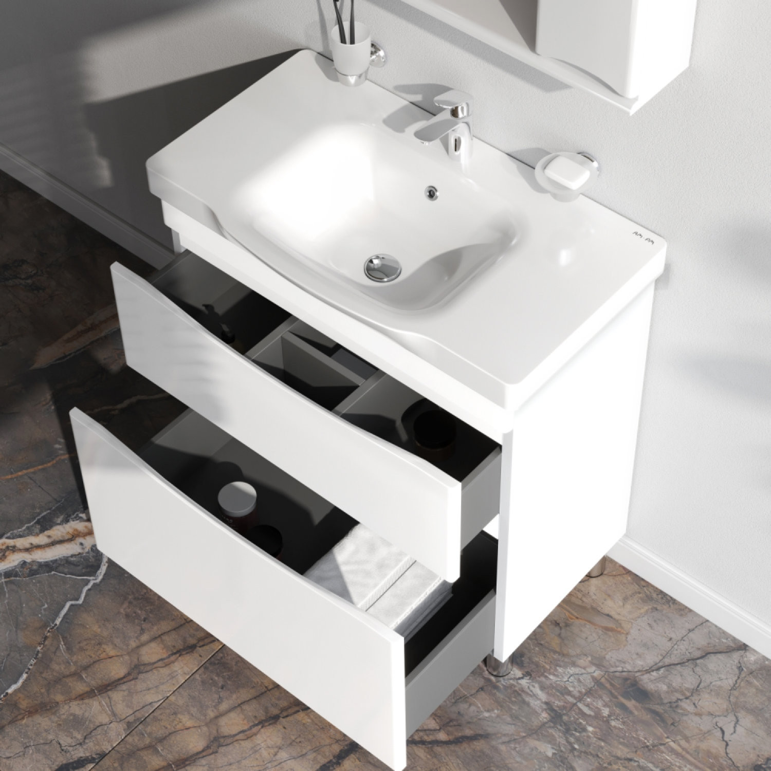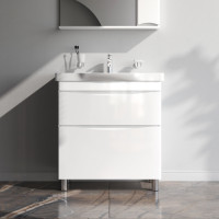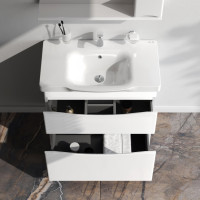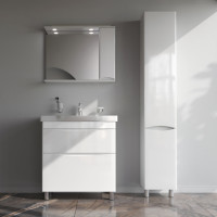 База под раковину напольная 80 см, 2 ящика, белый глянец