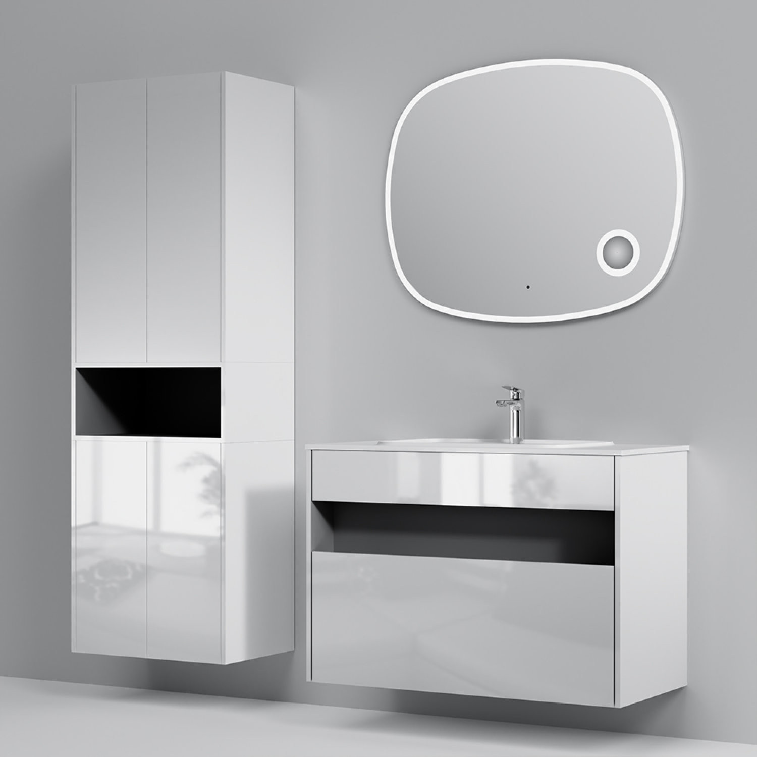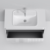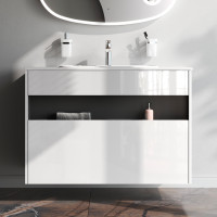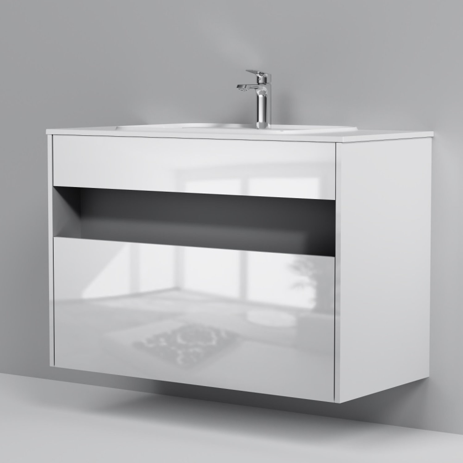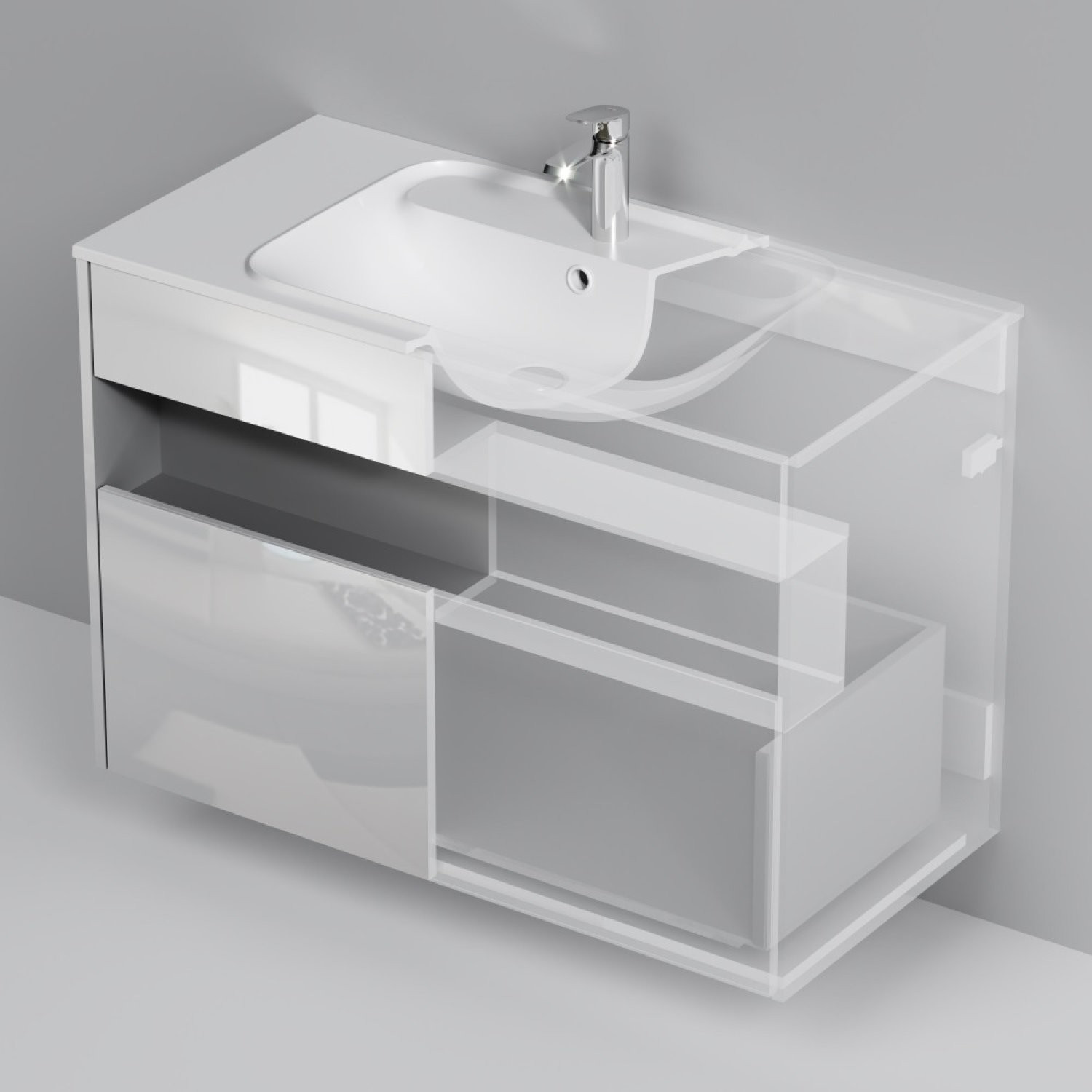 База под раковину с нишей и 1 ящиком, 100 см, белый глянец, универсальная