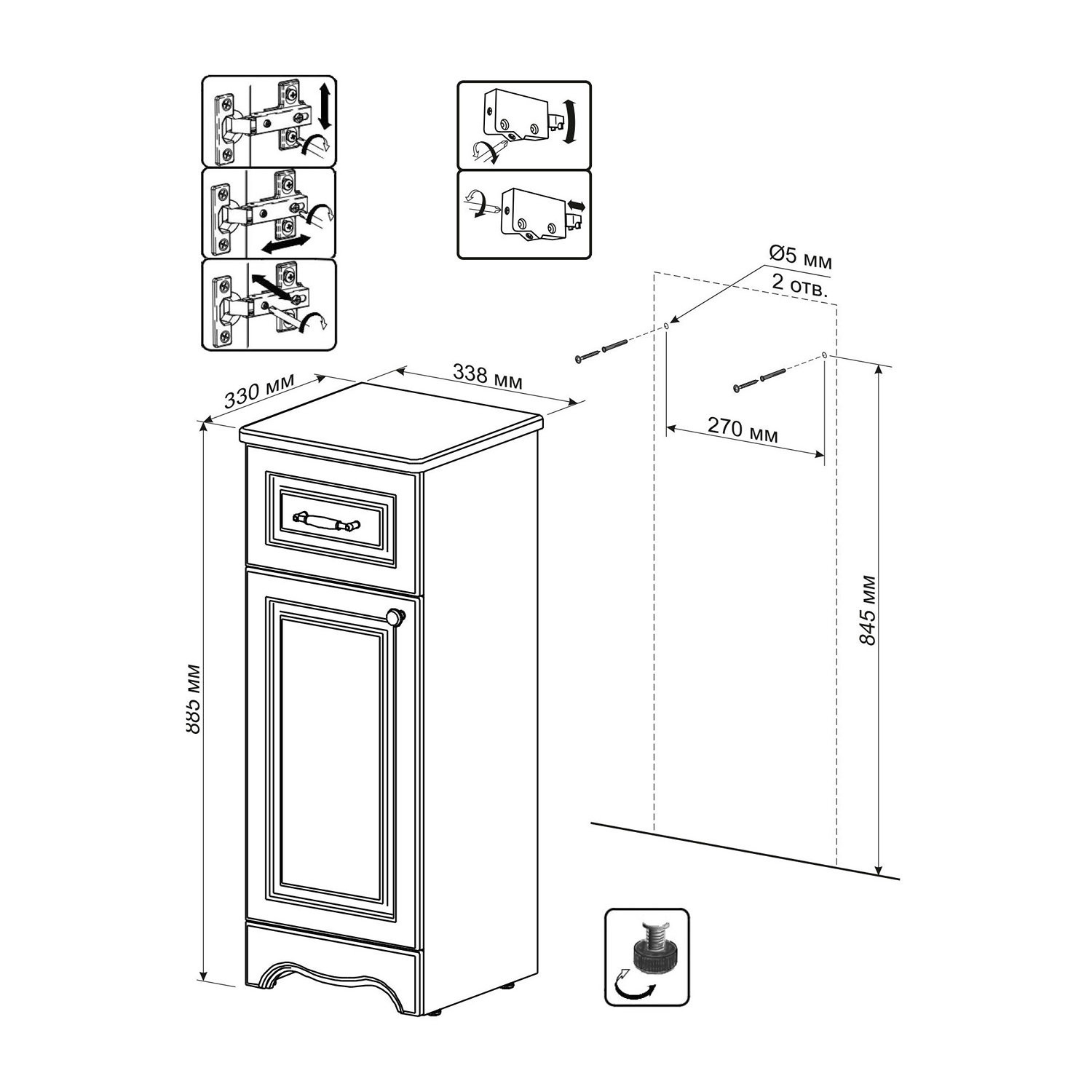 Тумба напольная Бриклаер АННА левая 34 см, белый