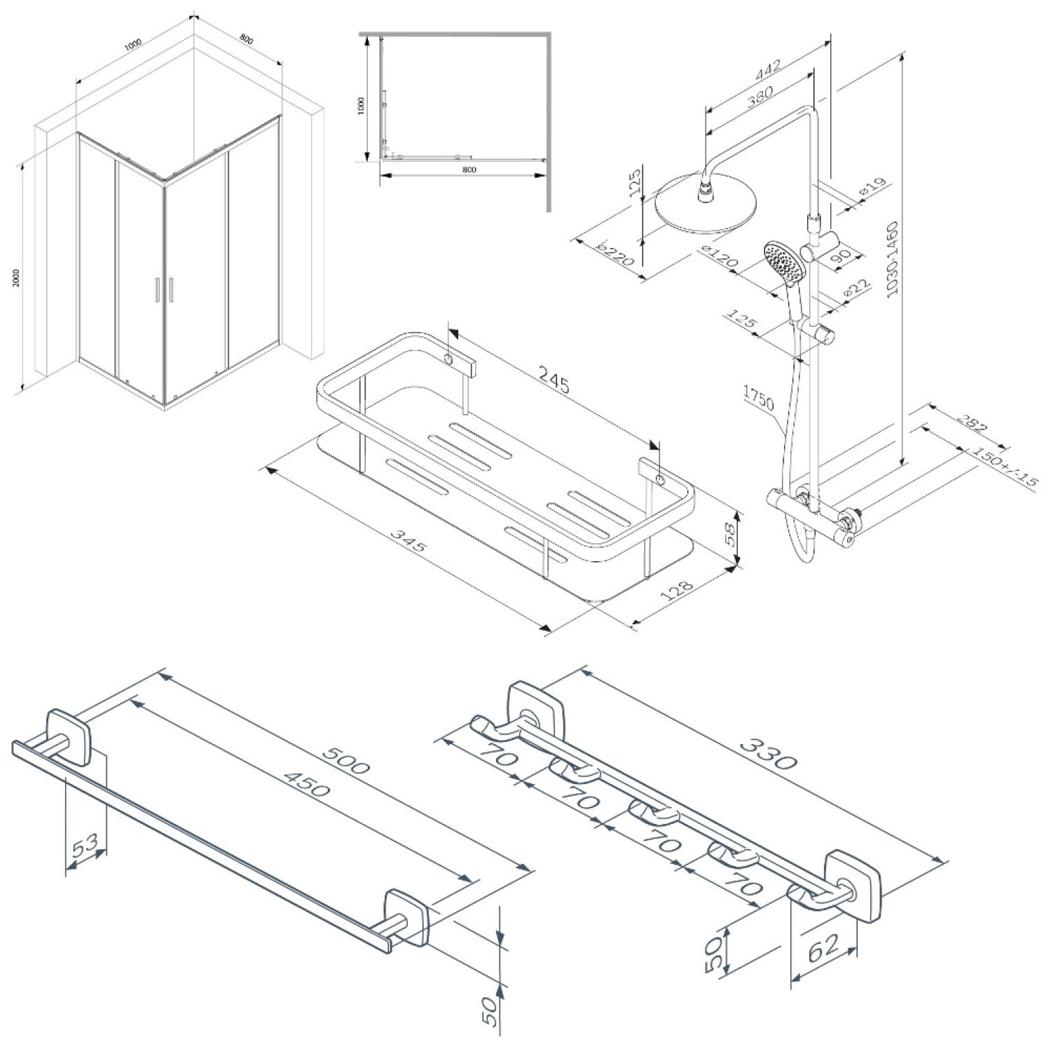 Комплект для ванной комнаты, зона помывочной 100х80 см