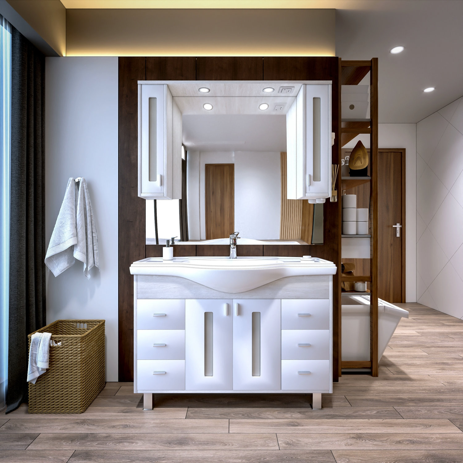 Комплектация: тумба, раковина, пенал, зеркало;