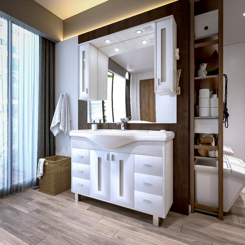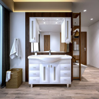 Комплект мебели Бриклаер БАЛИ состоит из: Тумба под раковину напольная Бриклаер БАЛИ светлая лиственница/белый, 120 см, Пенал Бриклаер БАЛИ 35 см, светлая лиственница/белый, Раковина Kirovit Классик, 120 см, Зеркало со шкафом Бриклаер БАЛИ 120 см, светлая лиственница/белый.