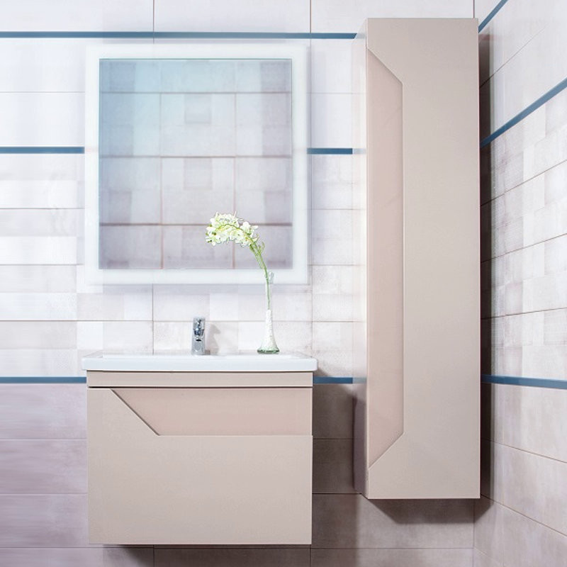 Комплект мебели Бриклаер Брайтон состоит из: Тумба под раковину подвесная Бриклаер Брайтон бежевый, 60 см, Раковина Cersanit MODUO SLIM UM-MOD60SL/1, 60 см, Пенал Бриклаер Брайтон 38 см, бежевый, Зеркало Эстель-1 60 с подсветкой LED, кнопочный выключатель.