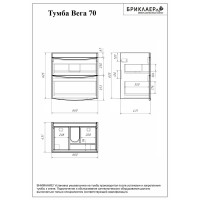 Комплект мебели для ванной Бриклаер ВЕГА 70, белый