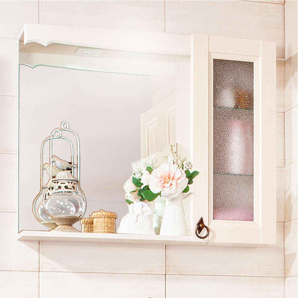 Зеркало со шкафчиком Бриклаер КАНТРИ 75S, бежевый дуб прованс