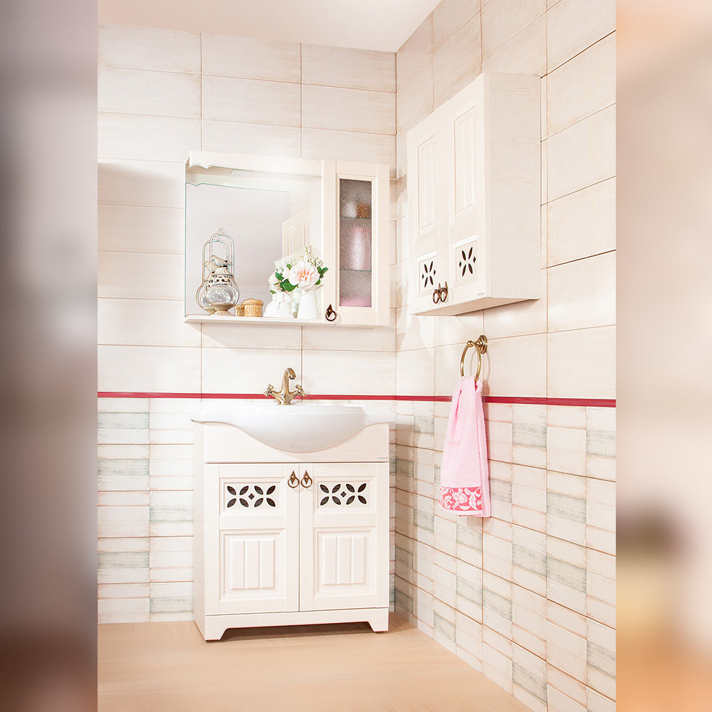 Комплект мебели Бриклаер КАНТРИ состоит из: Зеркало КАНТРИ 45 см, бежевый дуб прованс, Шкаф навесной Бриклаер КАНТРИ 30 см, бежевый дуб прованс.