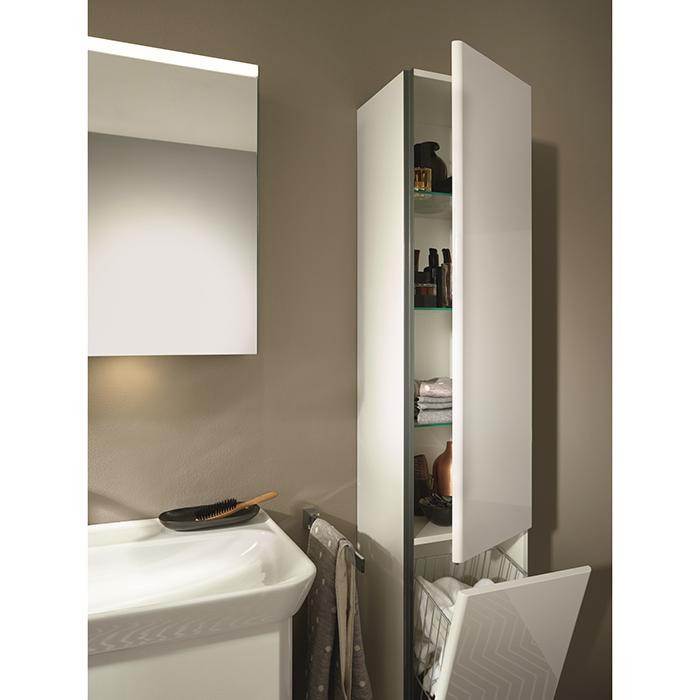 Пенал 1760х320х350 мм.1 дверь,петли права, 1 ящик для белья, 3 полки стекл, 1 полка несъемная,цвет F2833 белый высокогл.ручка G0161