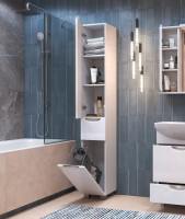 2 дверцы; 1 ящик; 2 полки ЛДСП; ручка металлическая хромированная; 1 бельевая корзина.