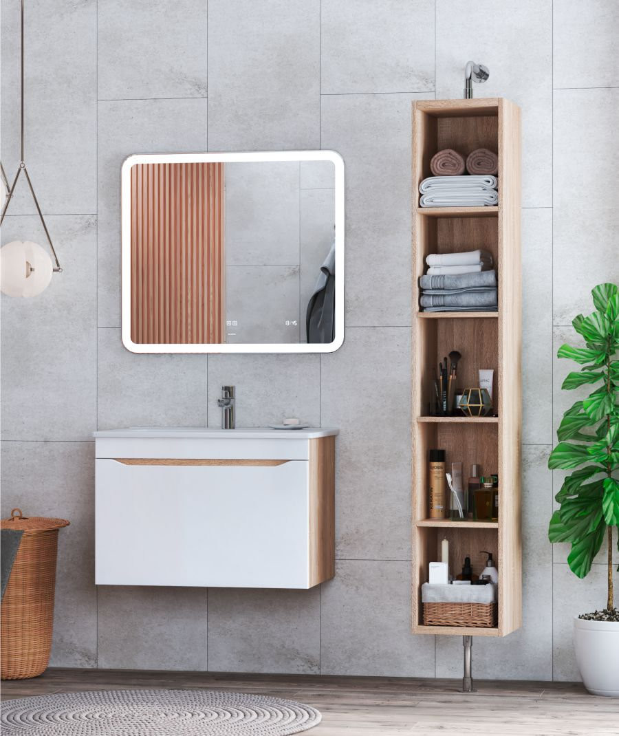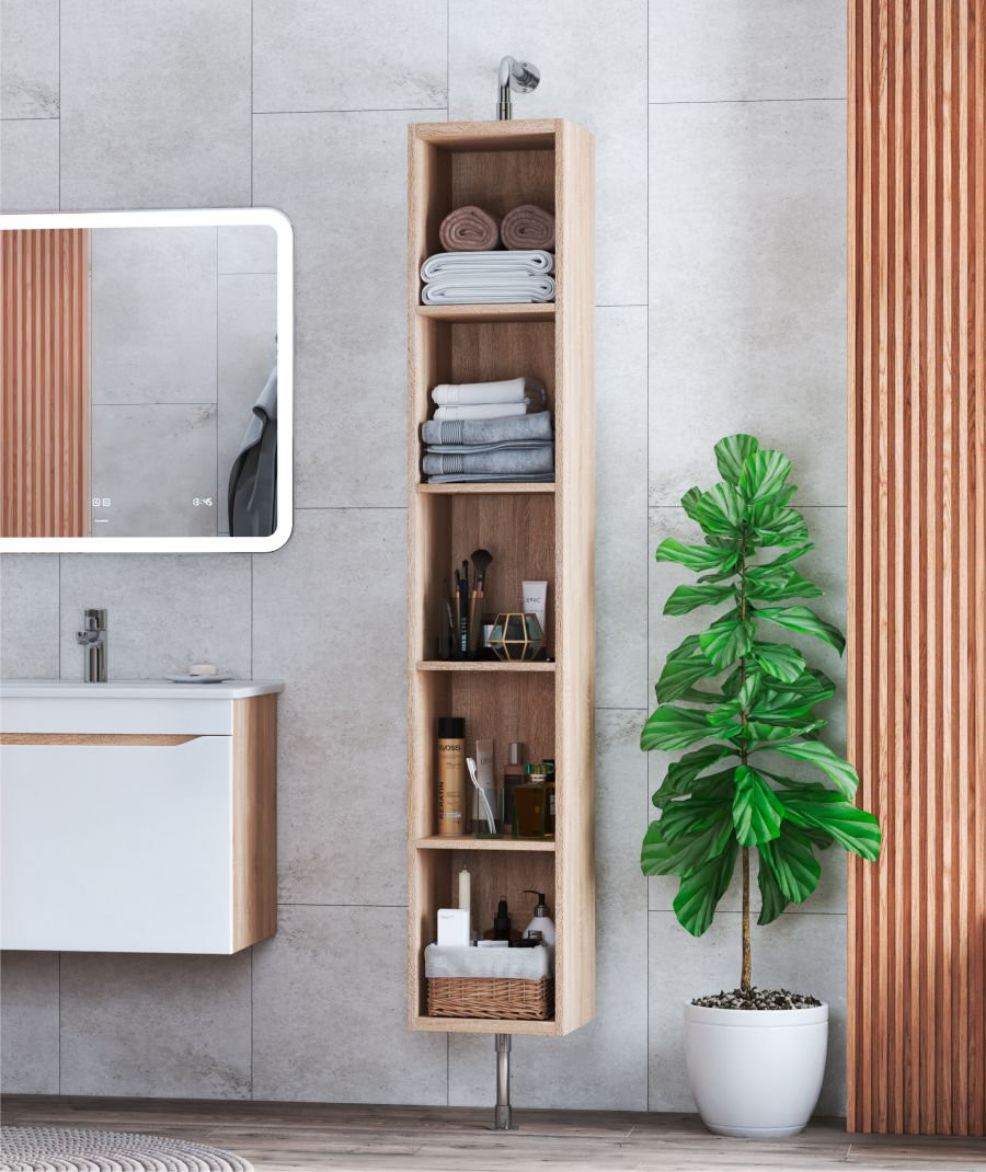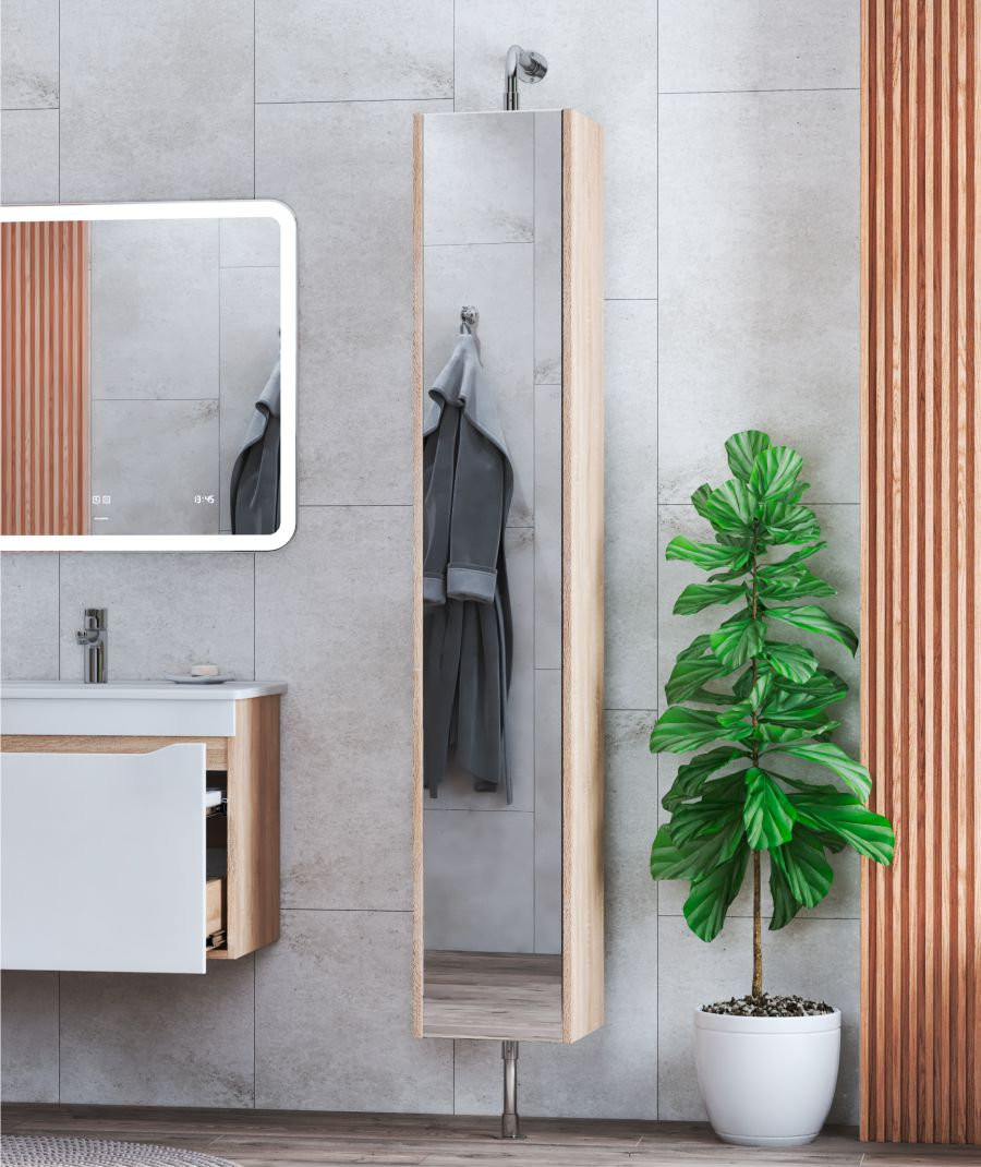 Пенал GRANI 300 - это стильная мебель для ванной комнаты, которая станет частью удобной системы хранения бытовых принадлежностей за счет вращающейся конструкции: не занимая много места, можно открыть доступ к полкам с любой удобной для вас стороны