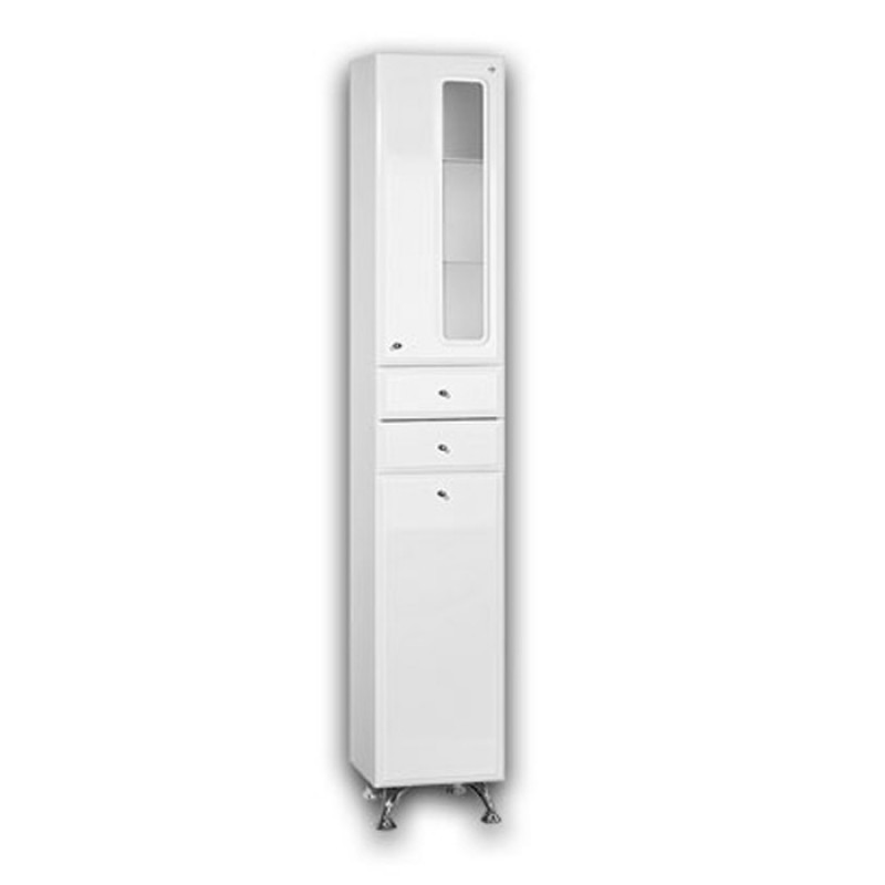 Шкаф-колонна "ЭКО 10/13 СТЕКЛО" 30см с 2-мя ящиками и корзиной на ножках, белый