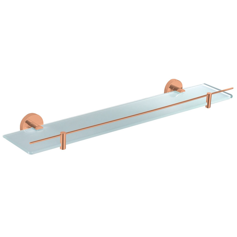 Полочка стеклянная, 600 мм. с ограничителем, ЦВЕТ РОЗОВЫЙ ЗОЛОТИСТЫЙ КРАЦОВАННЫЙ, арт. COA0900/60ZRK. Стильный предмет интерьера, предназначенный для ванной комнаты. Устанавливается на стену. Материал, применяемый для производства аксессуара - латунь/стекло. Толщина стекла 8 мм. Практичная и в то же время продуманная вещь, выполненная в стиле модерн. Кроме аксессуаров в коллекции COLORADO присутствуют смесители для раковины, ванны, душа, кухни. Это позволит оформить ванную комнату в едином стиле!