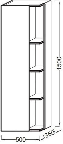 EB1179G-G1C Подвесная колонна 50 см, шарниры слева, (Ш 50 x Г 35 x В 150 cм), 3 полочки из цельного дерева,белый лак