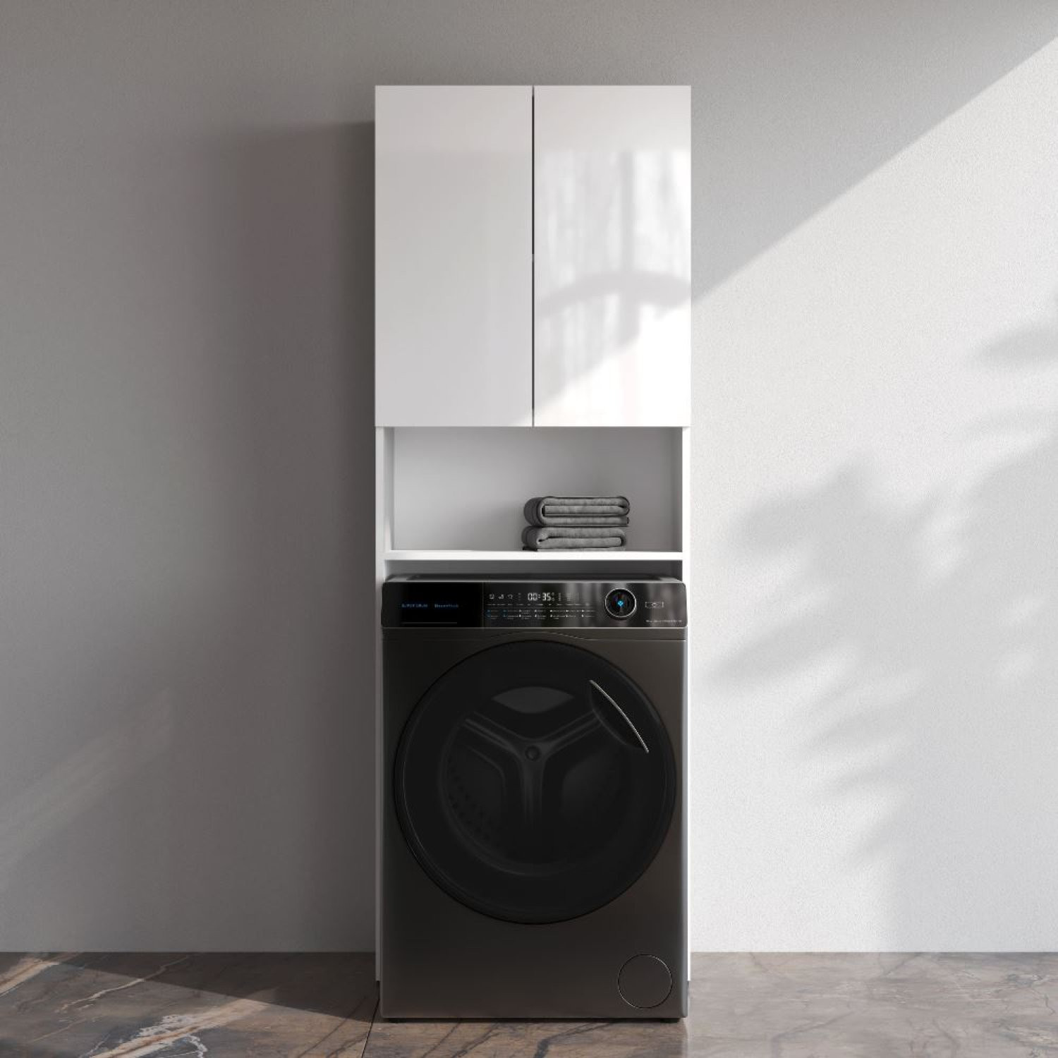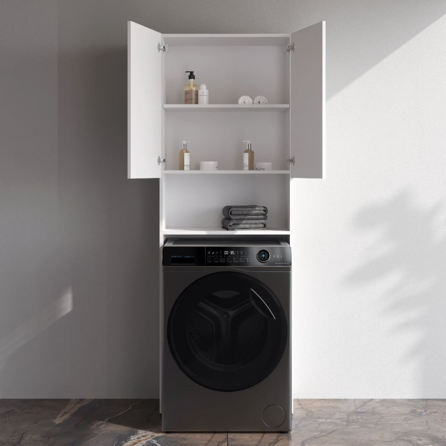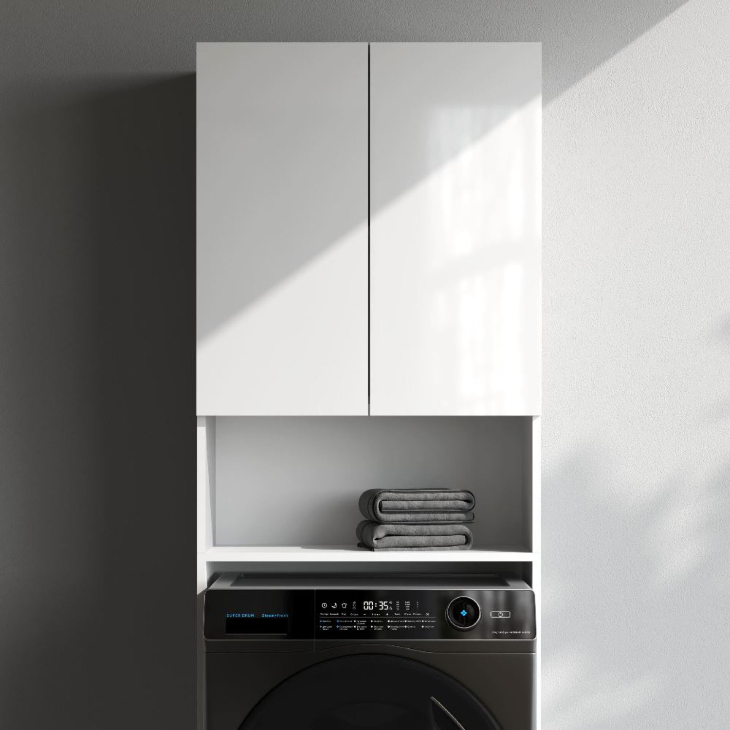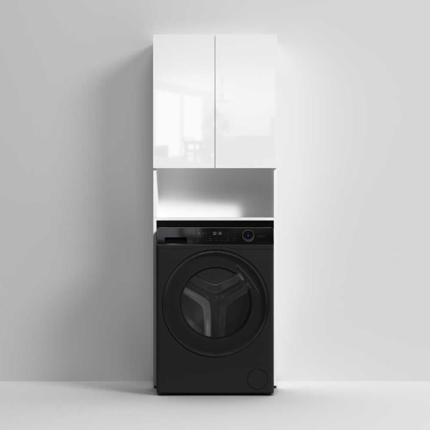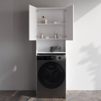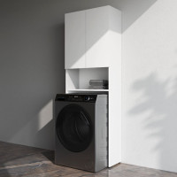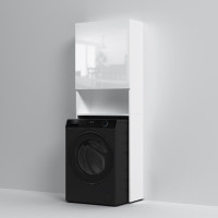 Шкаф над стиральной машиной с дверями и открытой полкой, узкий, 65 см, белый