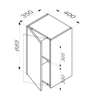 Шкаф с полками 40 см, высота 70 см, белый глянец, универсальный