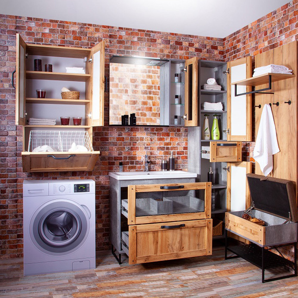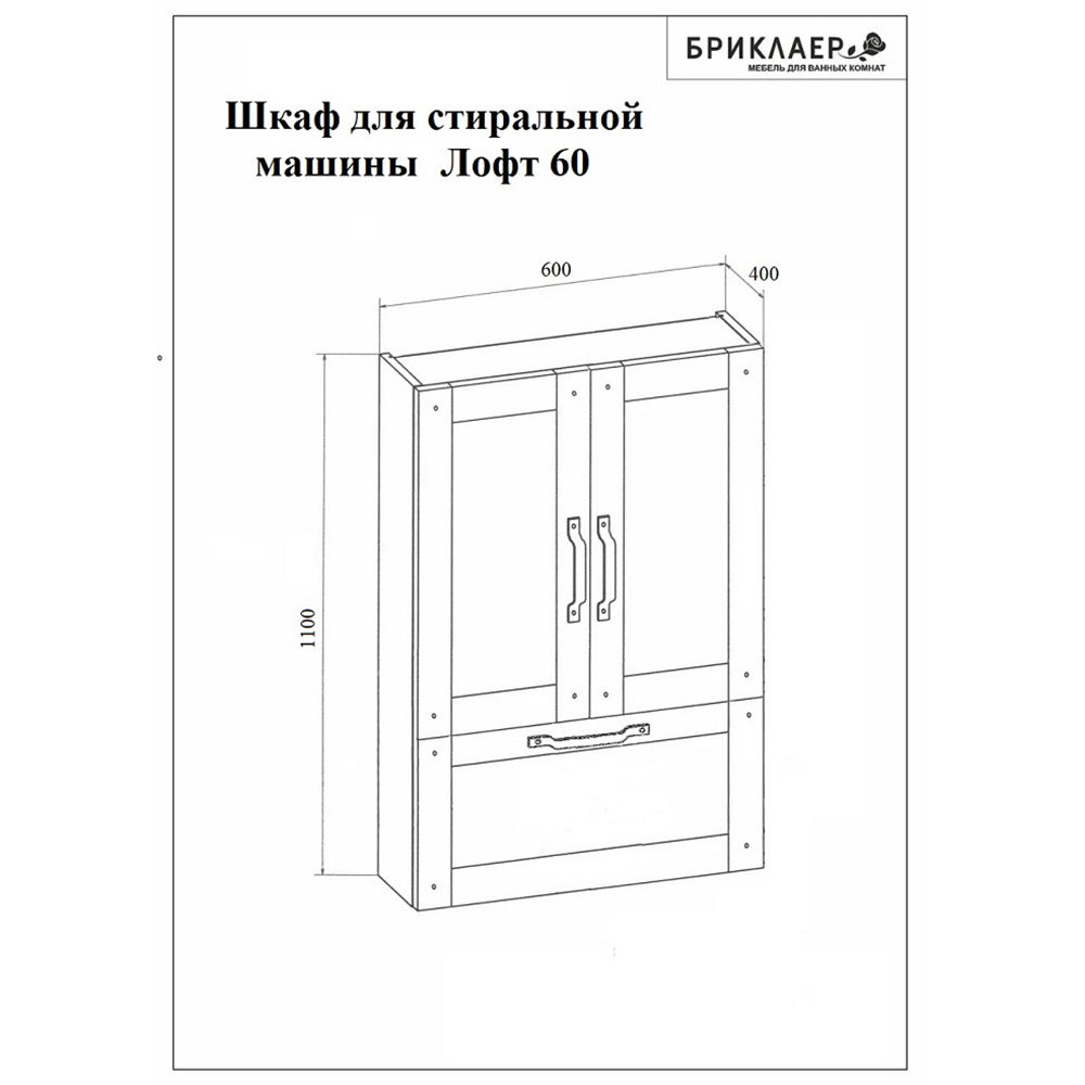 Шкаф навесной Бриклаер ЛОФТ 60 см, установка над стиральной машиной, метрополитен грей