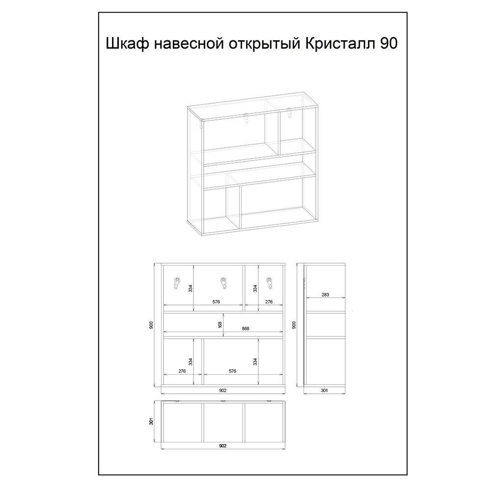 Шкаф навесной открытый Бриклаер КРИСТАЛЛ 90 см, муссон