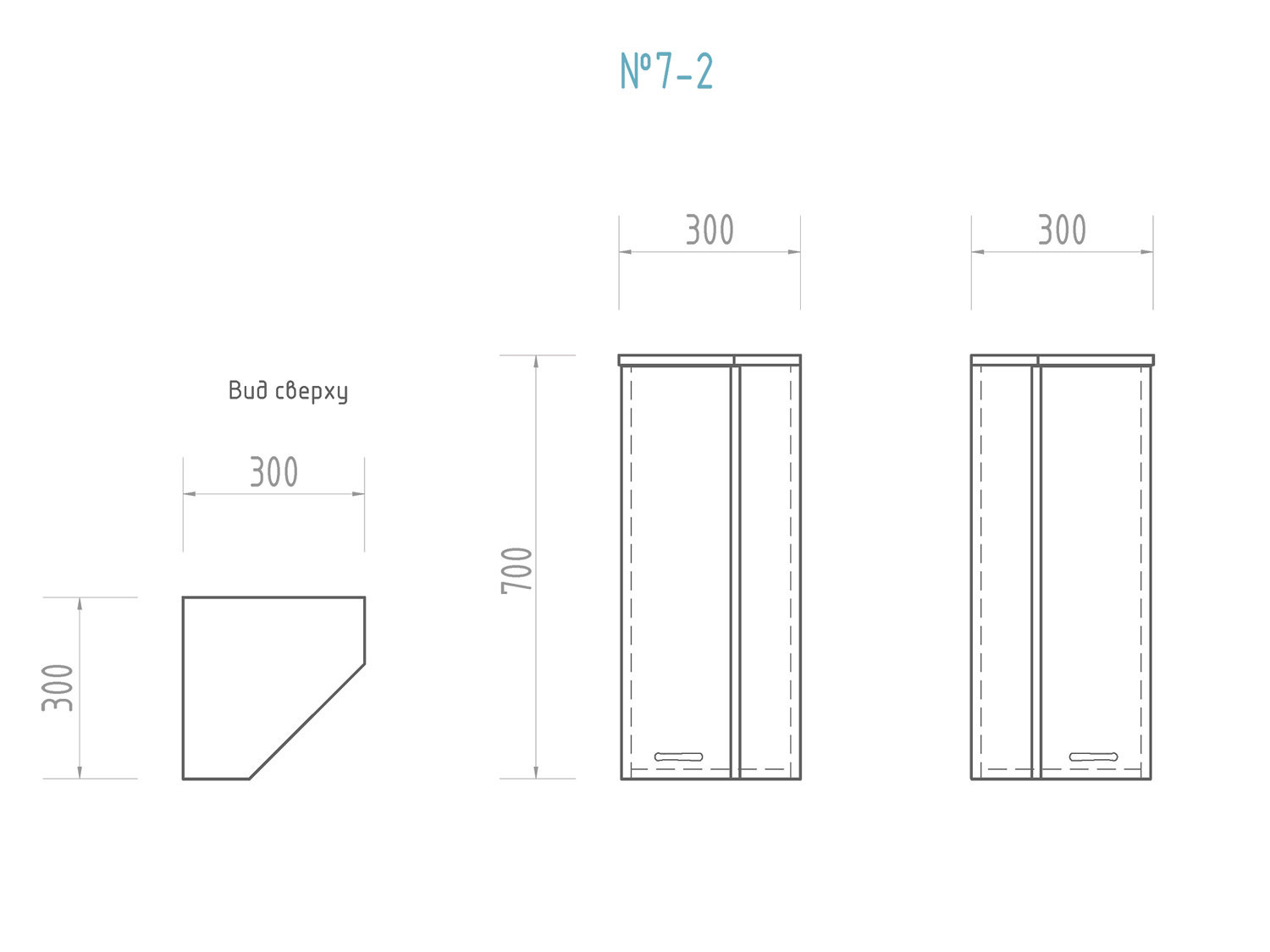 Угловой подвесной шкаф. 1 дверца; 2 полки ЛДСП