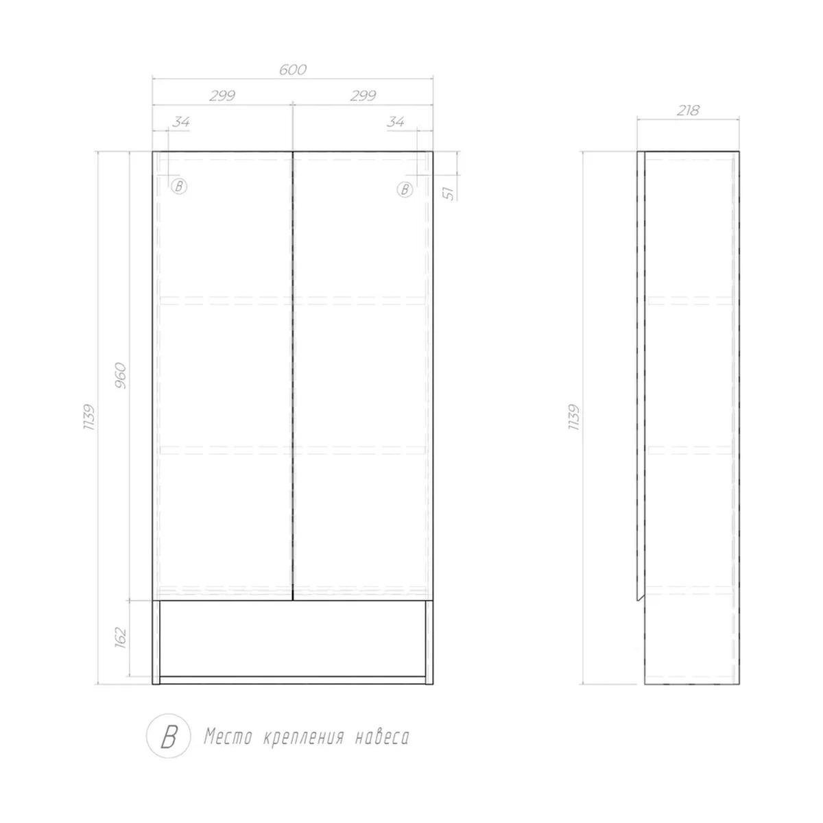 Комплектация: 2 дверцы; 2 полки ЛДСП; интегрированная ручка, 2 навеса;