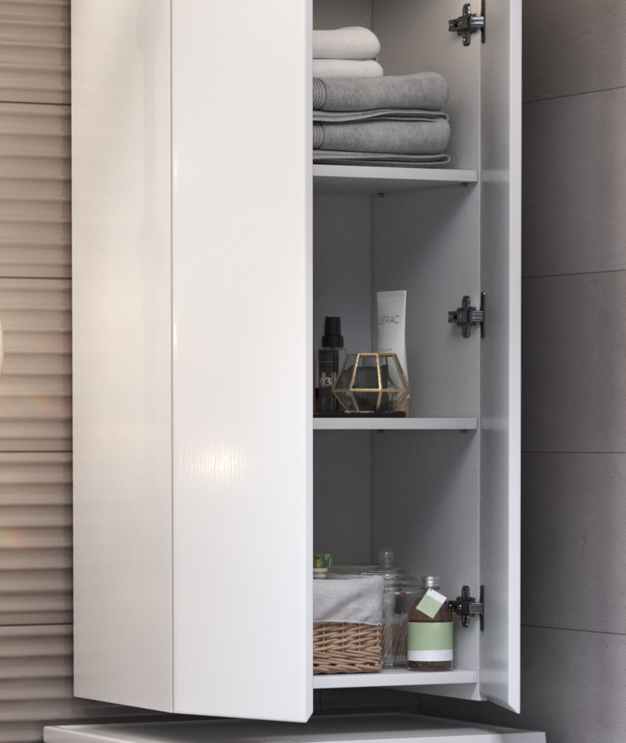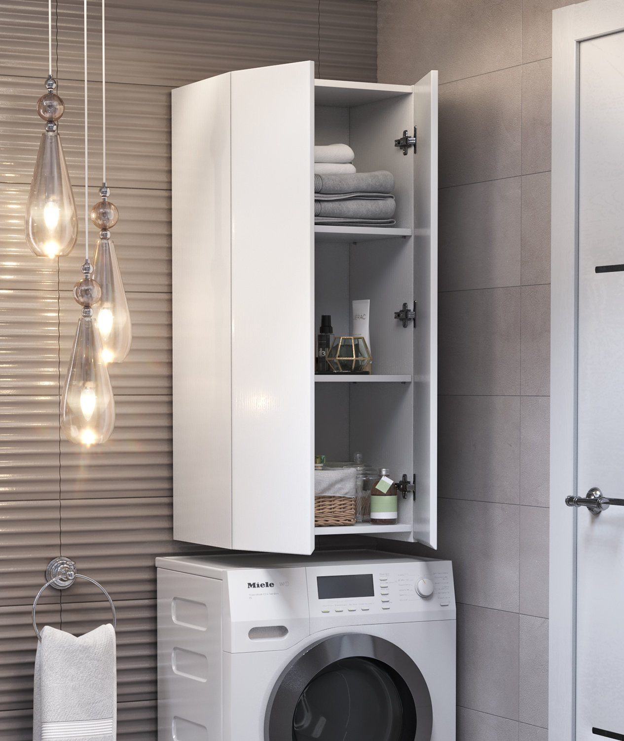 Шкафы Wing – идеальное решение, позволяющее сэкономить пространство ванной комнаты за счет размещения над стиральной машиной