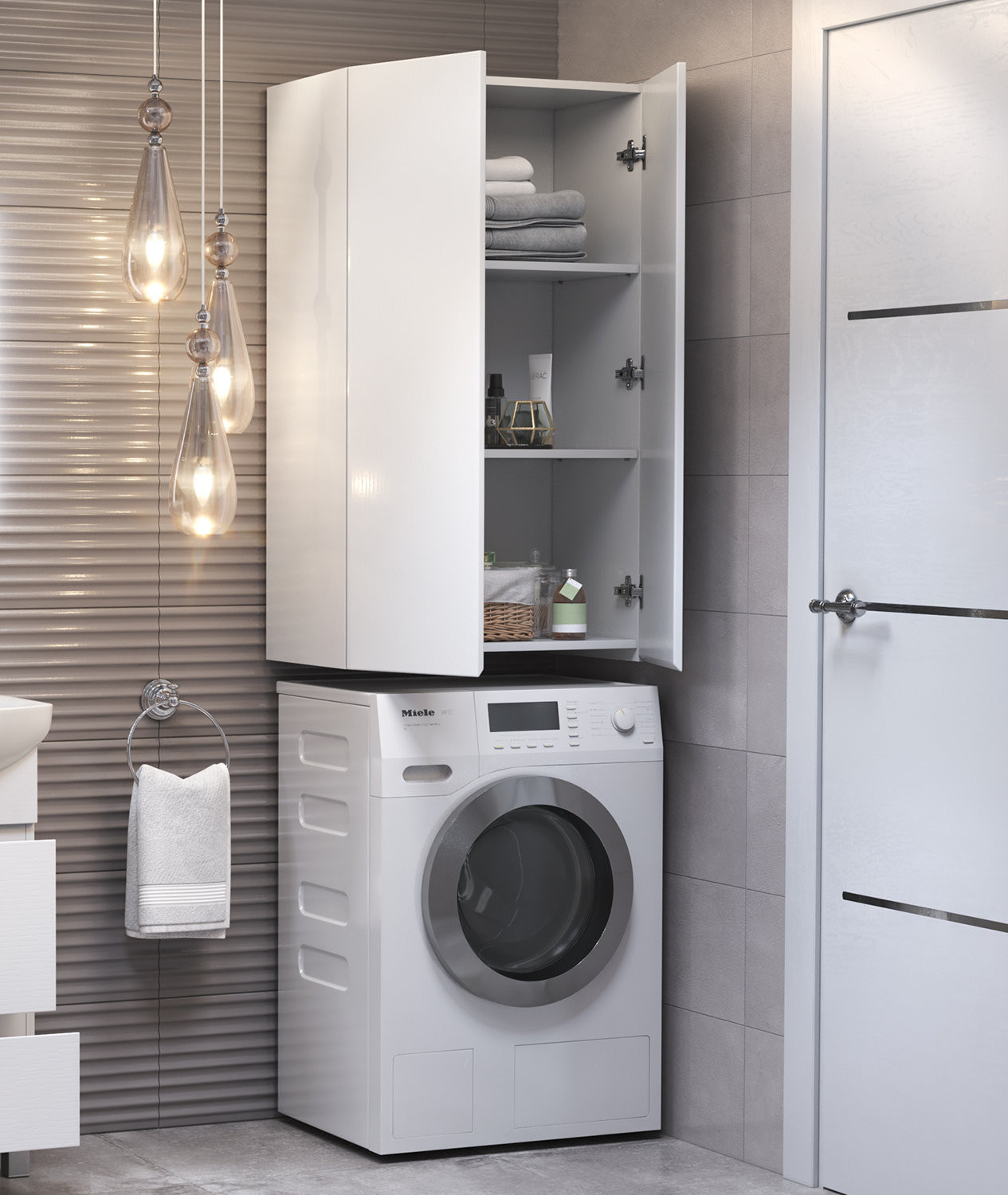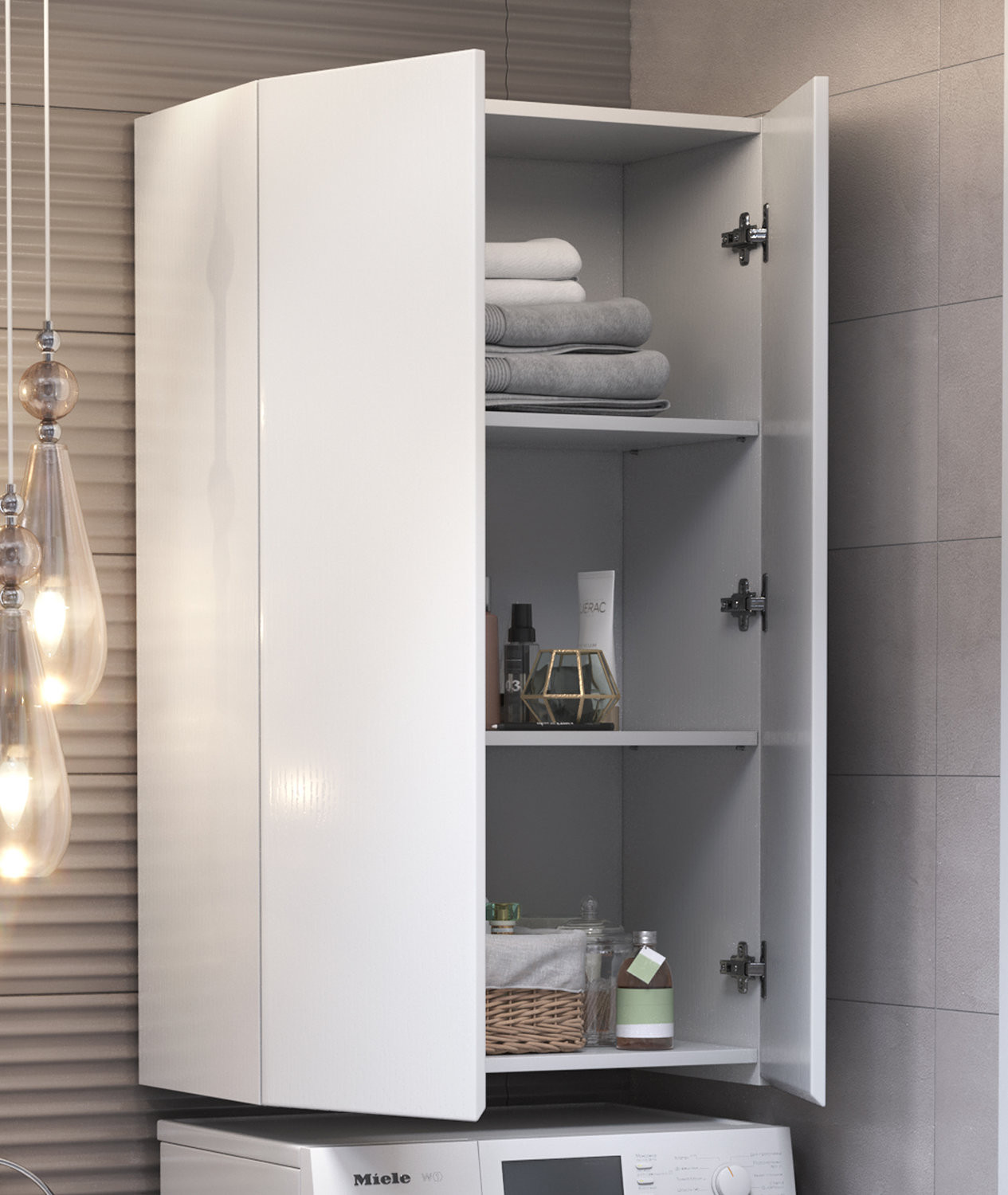 Шкафы Wing – идеальное решение, позволяющее сэкономить пространство ванной комнаты за счет размещения над стиральной машиной