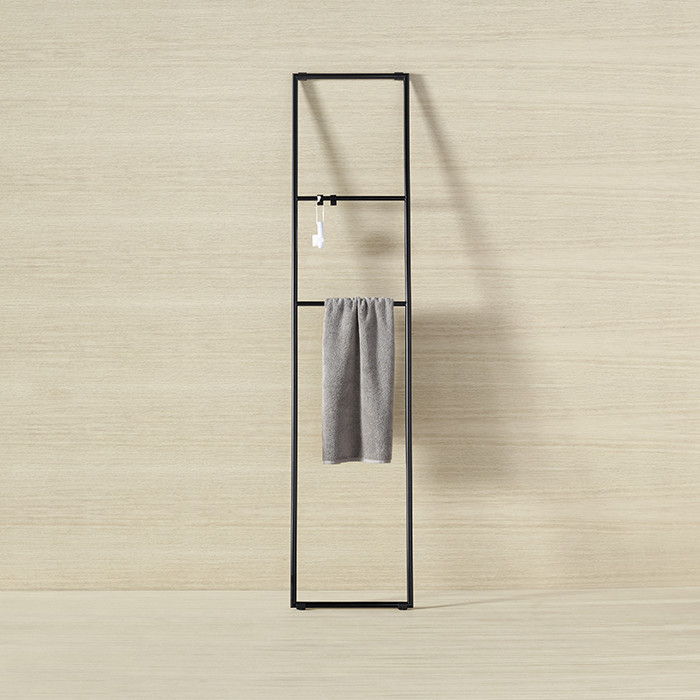 Стеллаж для полотенец 400х20х1800мм, 2 поперечины, 2 крючка, цвет черный