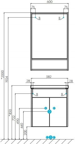 1A237602FA860 Зеркало-Шкаф Флай 60 Дуб Крафт бел