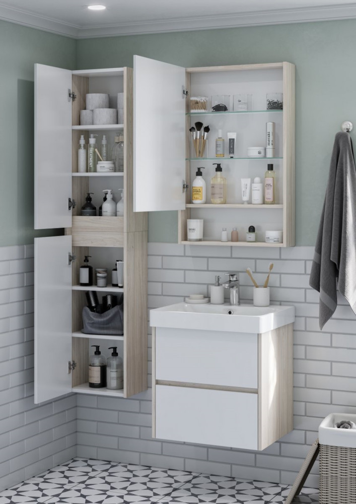 1A252102SDB20 Зеркальный шкаф Сканди 55 Белый/Дуб Верона