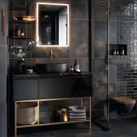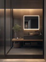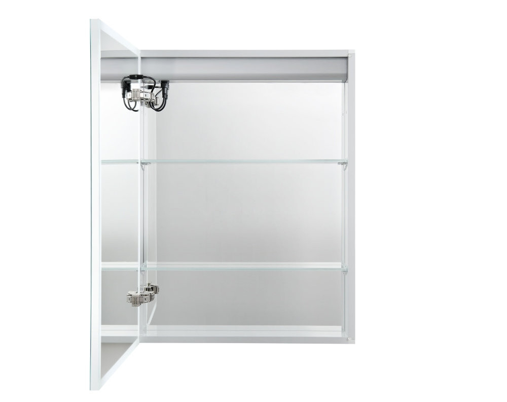 AQ7603B-MLC Алюминиевый зеркальный шкаф с подсветкой 600*800*133,крепеж.Одна зерк.дверца,антизапотевание,акрил. подсветка, петли BLUM