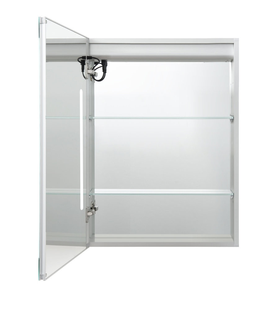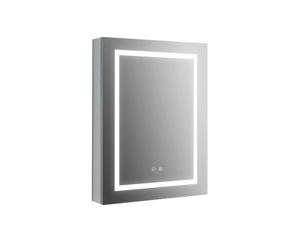 AQ7604-MLC Алюминиевый зеркальный шкаф с подсветкой 600*800*133,крепеж. Одна зеркальная дверца, две стекл.полки, круговая подсветка, антизапотевание
