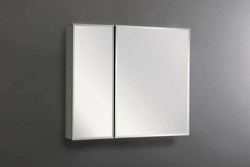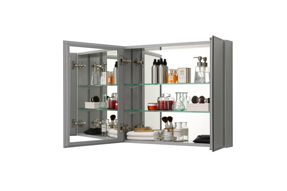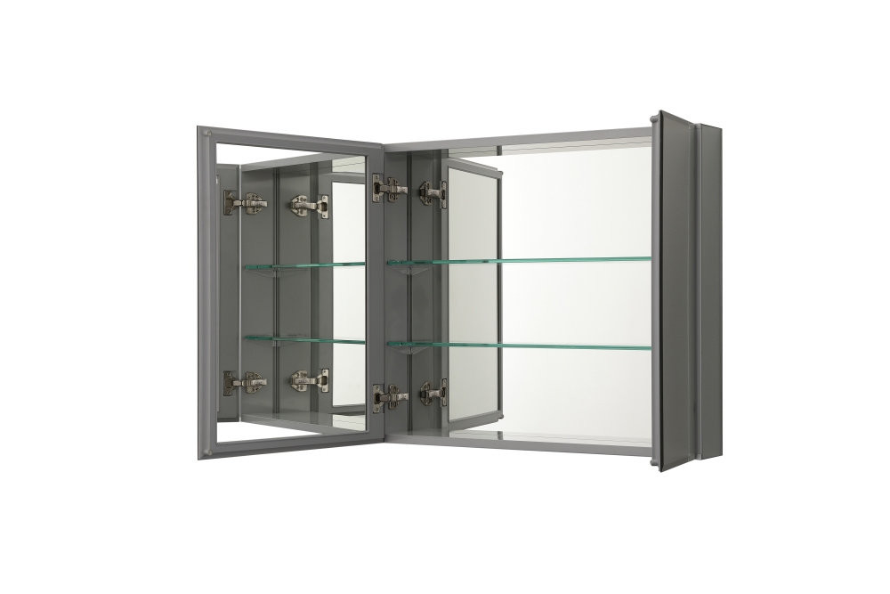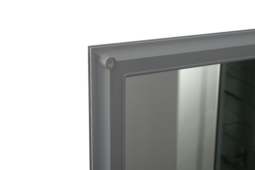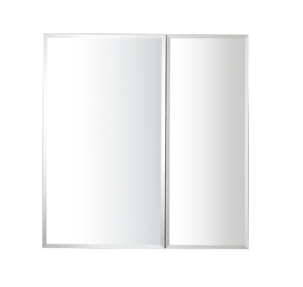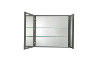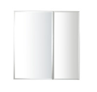 AQ7608-MC Алюминиевый зеркальный шкаф без подсветки 636*660*134, крепеж. Две зеркальные дверцы шириной 38 и 25,5 см. Две стекл.полки 6мм