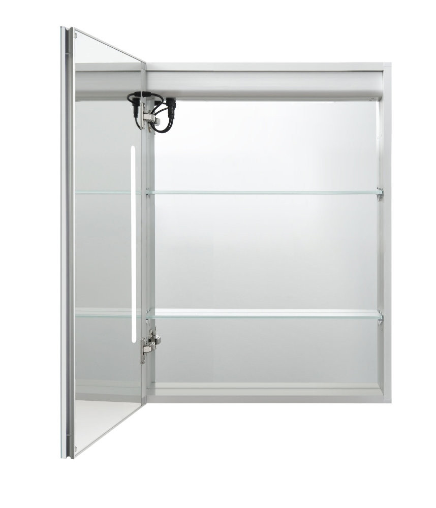 AQ7609-MLC Алюминиевый зеркальный шкаф с подсветкой 600*800*133,крепеж. Одна зеркальная дверца, антизапотевание, акриловая подсветка