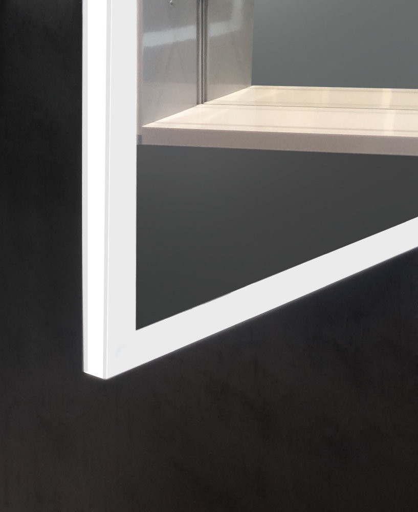AQ7803B-MLC Алюминиевый зеркальный шкаф с подсветкой 800*700*133,крепеж. Две зерк.дверцы шириной 39,85см,антизапотевание, акрил. подсветка, петли BLUM