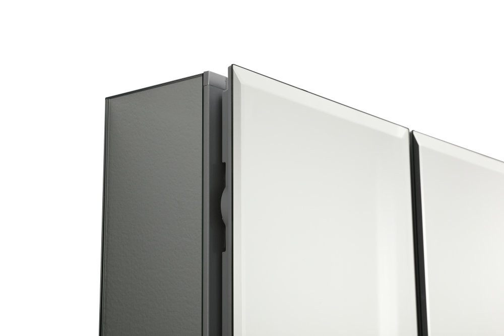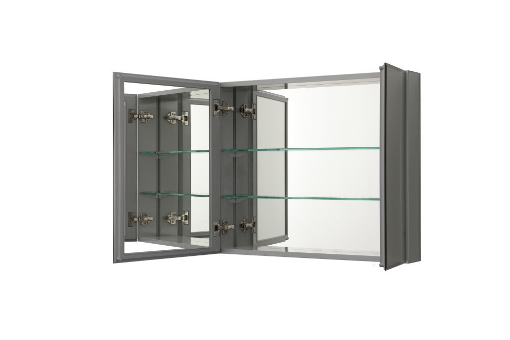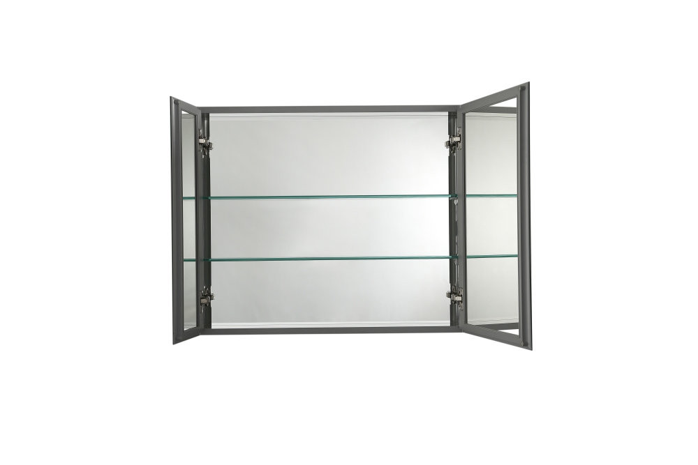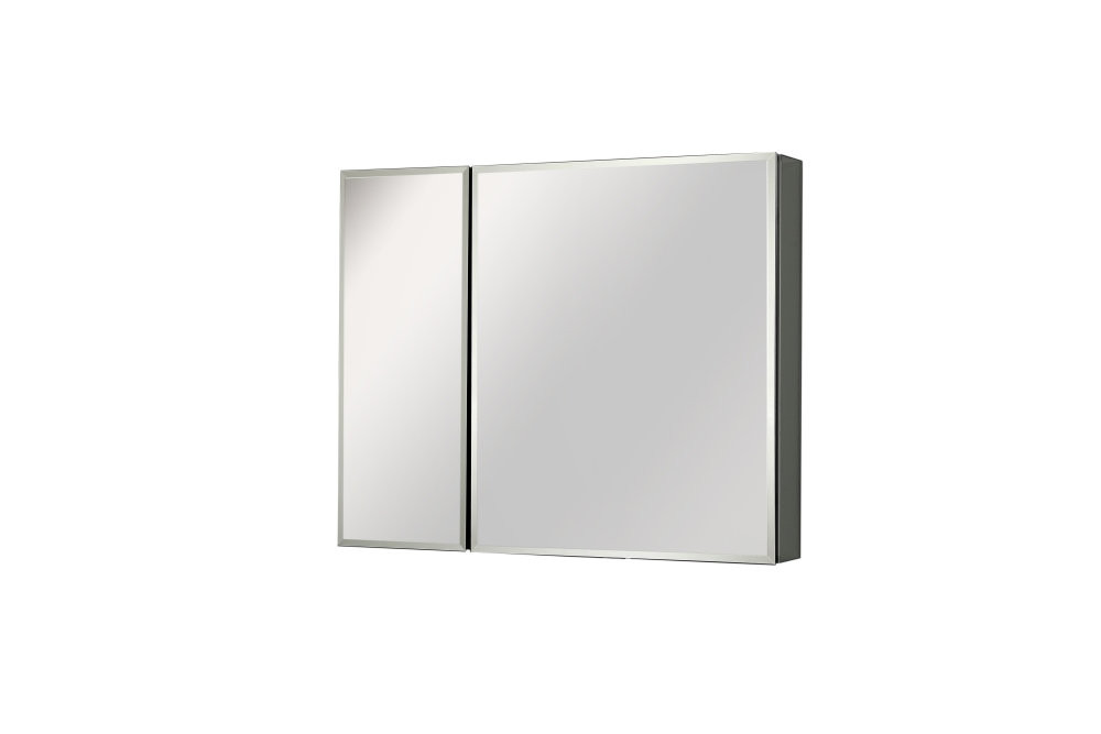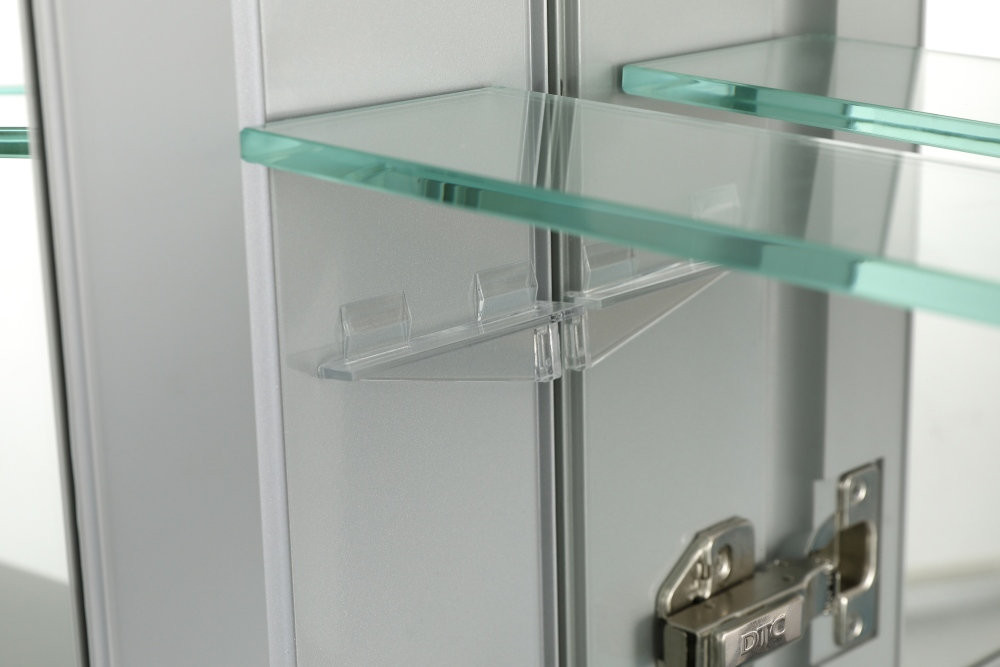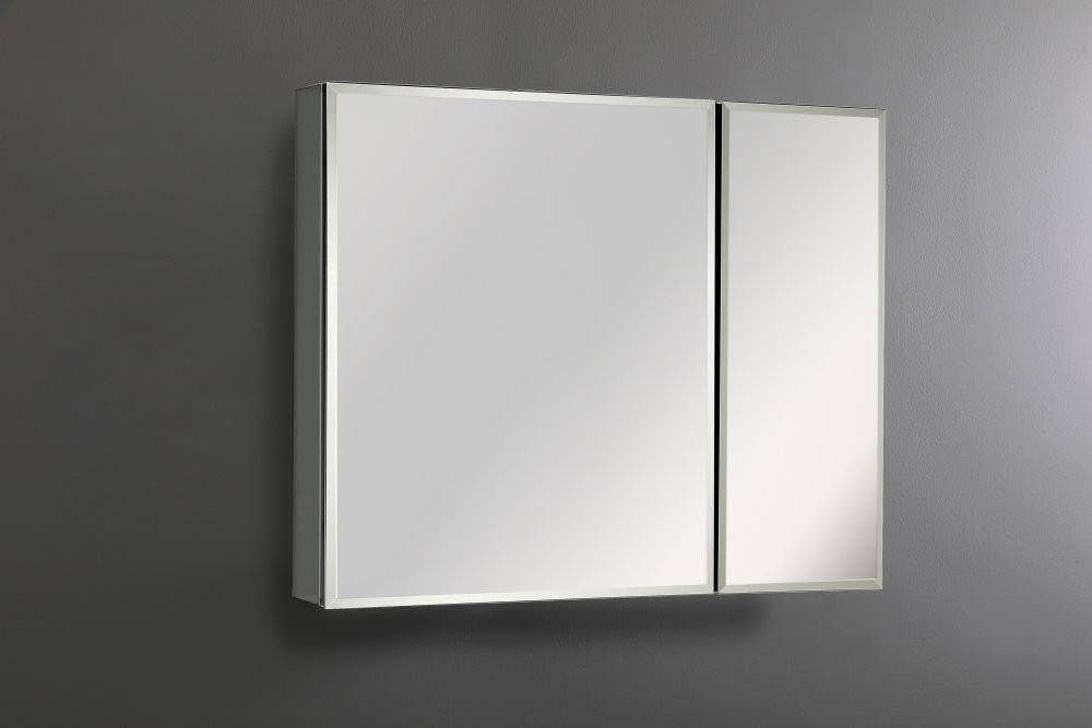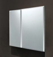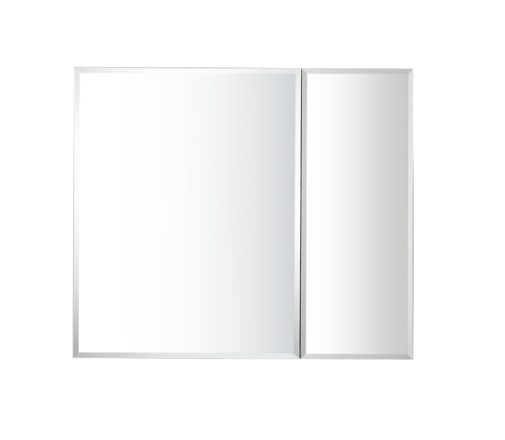 AQ7808-MC Алюминиевый зеркальный шкаф без подсветки 762*660*134,крепеж. Две зеркальные дверцы шириной 50,9 и 25,5 см. Две стекл.полки 6 мм