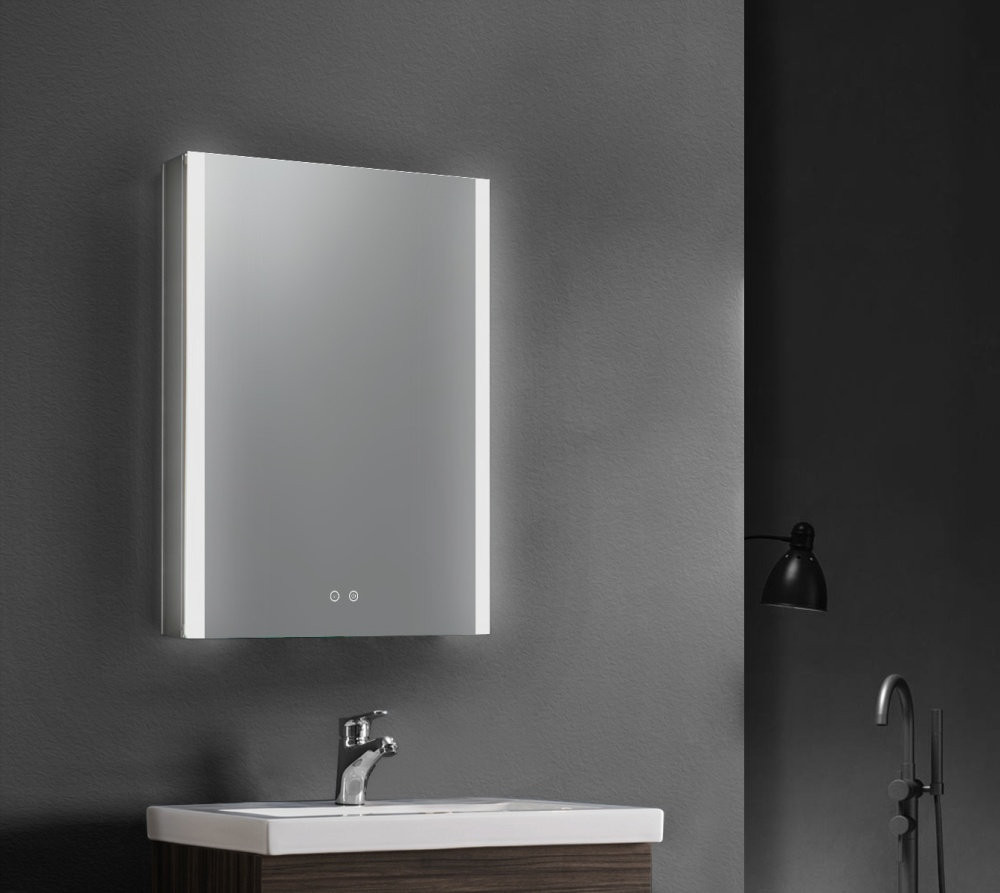 AQ7809-MLC Алюминиевый зеркальный шкаф с подсветкой 800*700*133,крепеж. Две зерк.дверцы шириной 39,85см,антизапотевание, акриловая подсветка