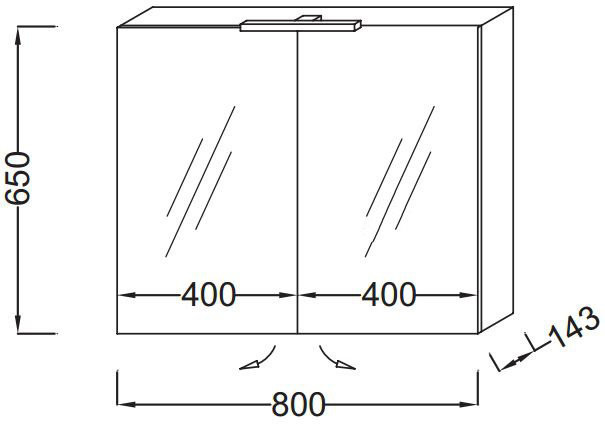 RYTHMIK EB796RU-E10 Зеркальный шкаф 80 см.Ш80*Г14,3*В65 см.2 дверцы с двойным зерк, 2 стекл полочки на отделение, магнит, флуоресцентная подсветка.