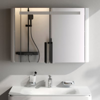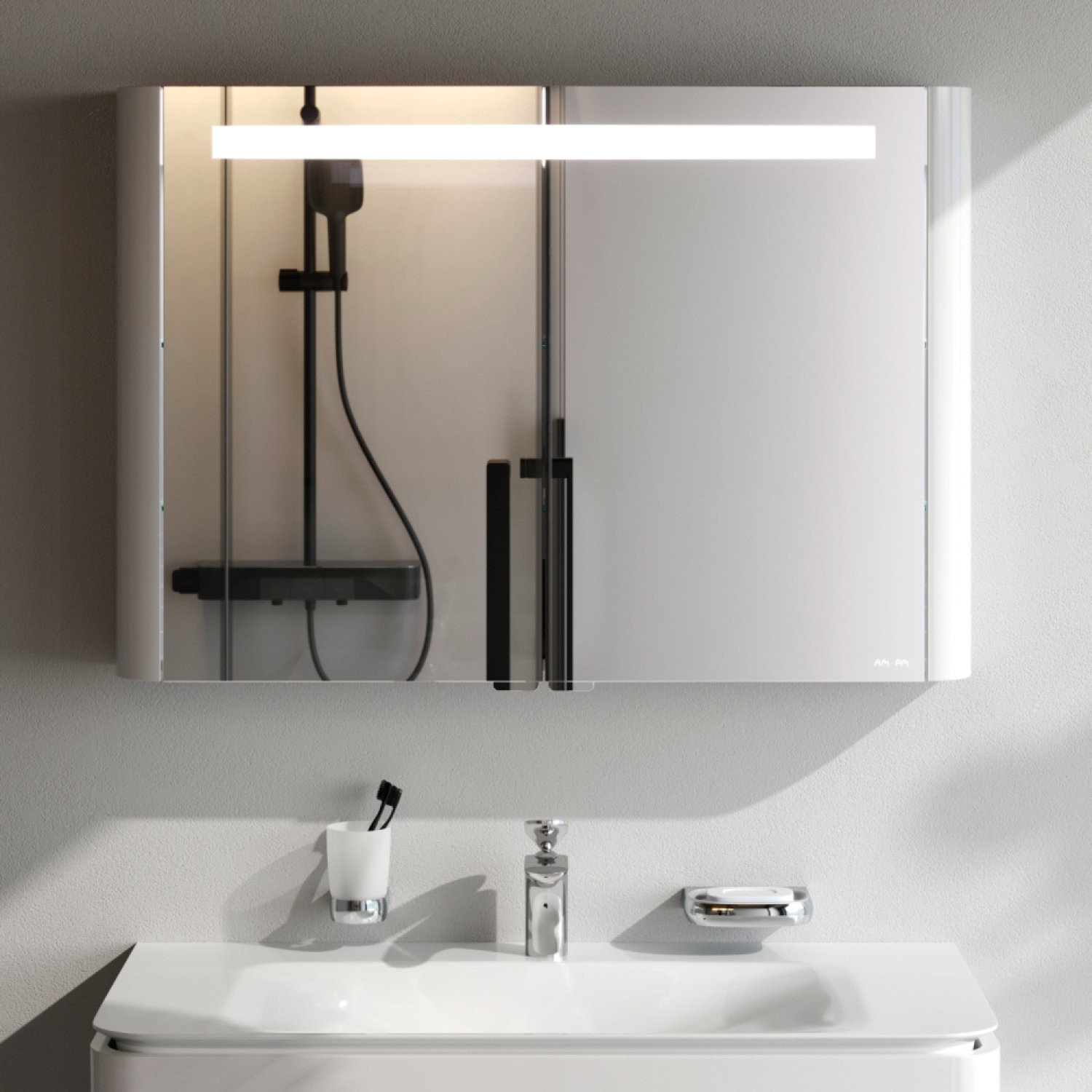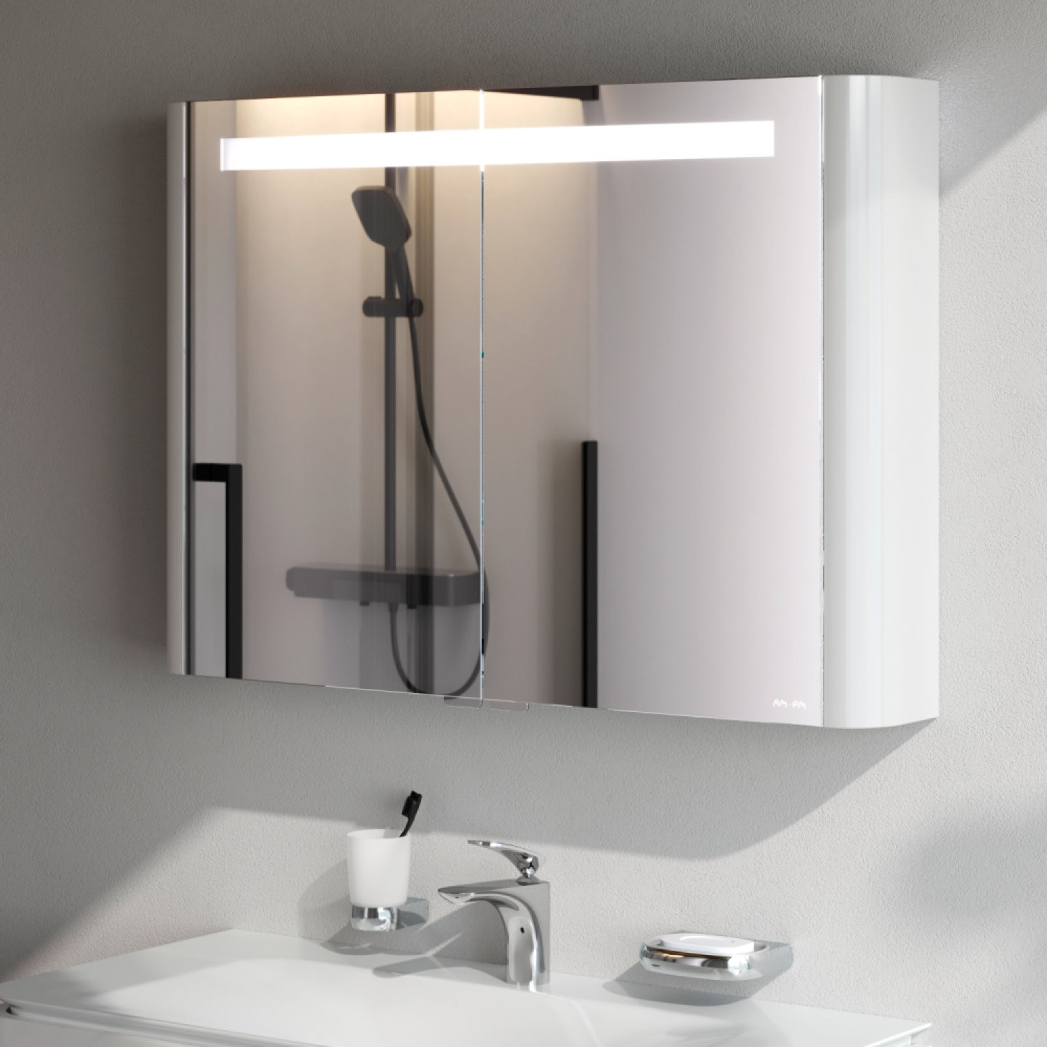 Зеркальный шкаф с подсветкой 100 см, белый глянец