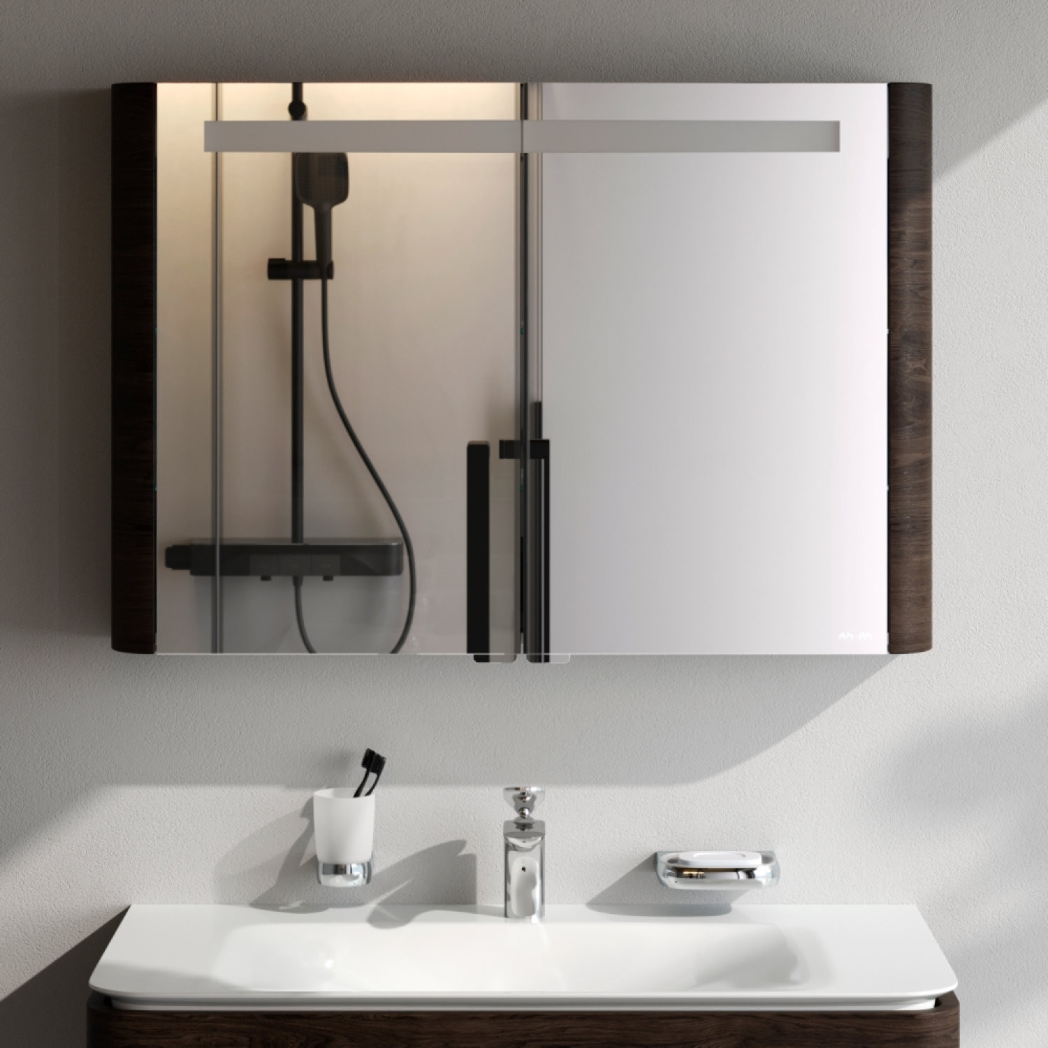 Зеркальный шкаф с подсветкой 100 см, табачный дуб