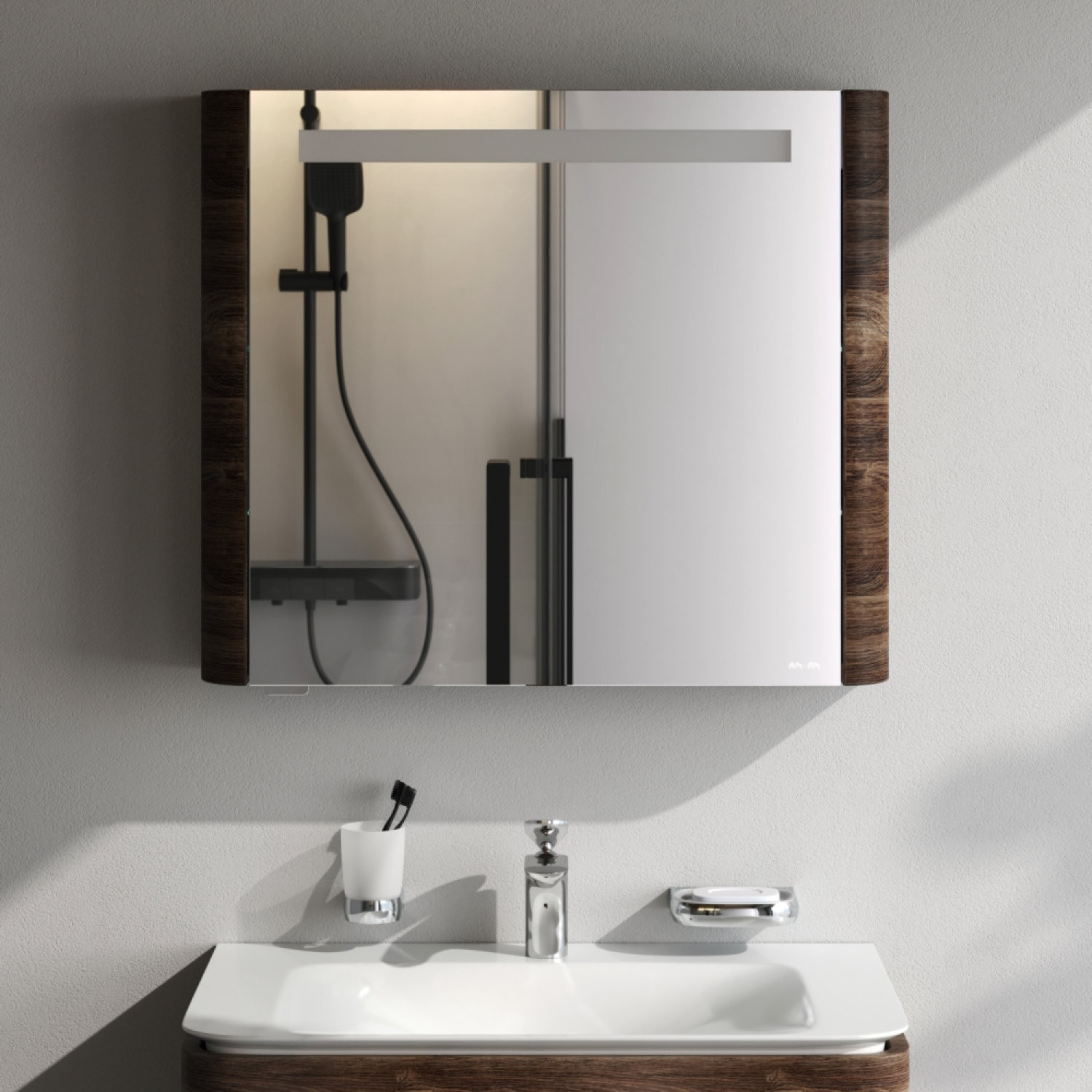 Зеркальный шкаф с подсветкой 80 см, левый, орех
