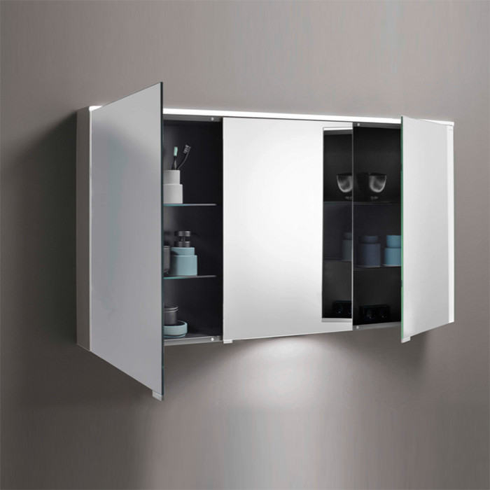 Зеркальный шкаф с гориз светодиод подсв.1200х800х170 мм,3 зерк двери с обоих сторон, стекл полки.выкл.подсв умыв. вариант L, цвет F2010