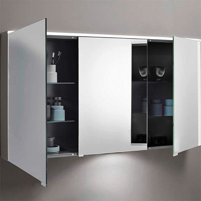 Зеркальный шкаф с гориз светодиод подсв.1200х800х170 мм,3 зерк двери с обоих сторон, стекл полки.выкл.подсв умывальника, вариант R, F2010