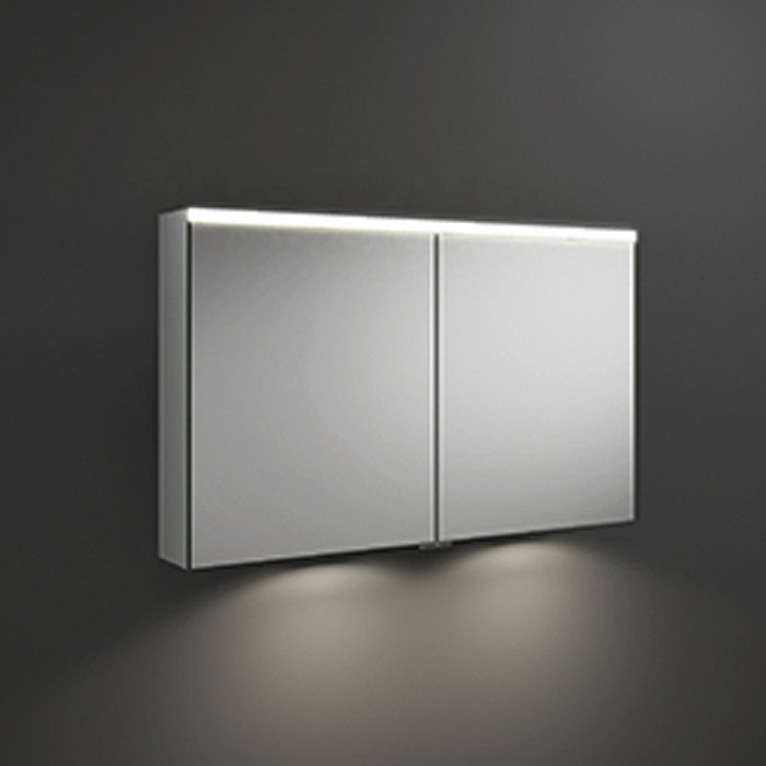 Зеркальный шкаф с подсветкой , 1108х680х160 мм,свет. 1 выкл.и розетка, стекл полки, 2 зеркальн двери с обеих сторон, зеркальный корпус