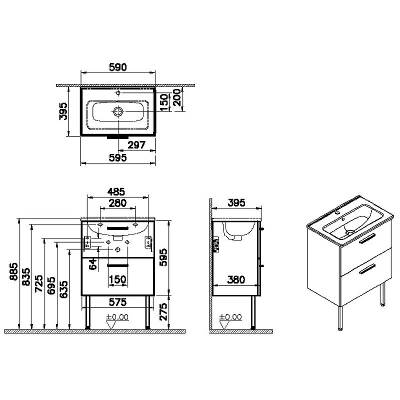 66106 Модуль с 2 ящиками с раковиной, 60 см, цвет белый глянец