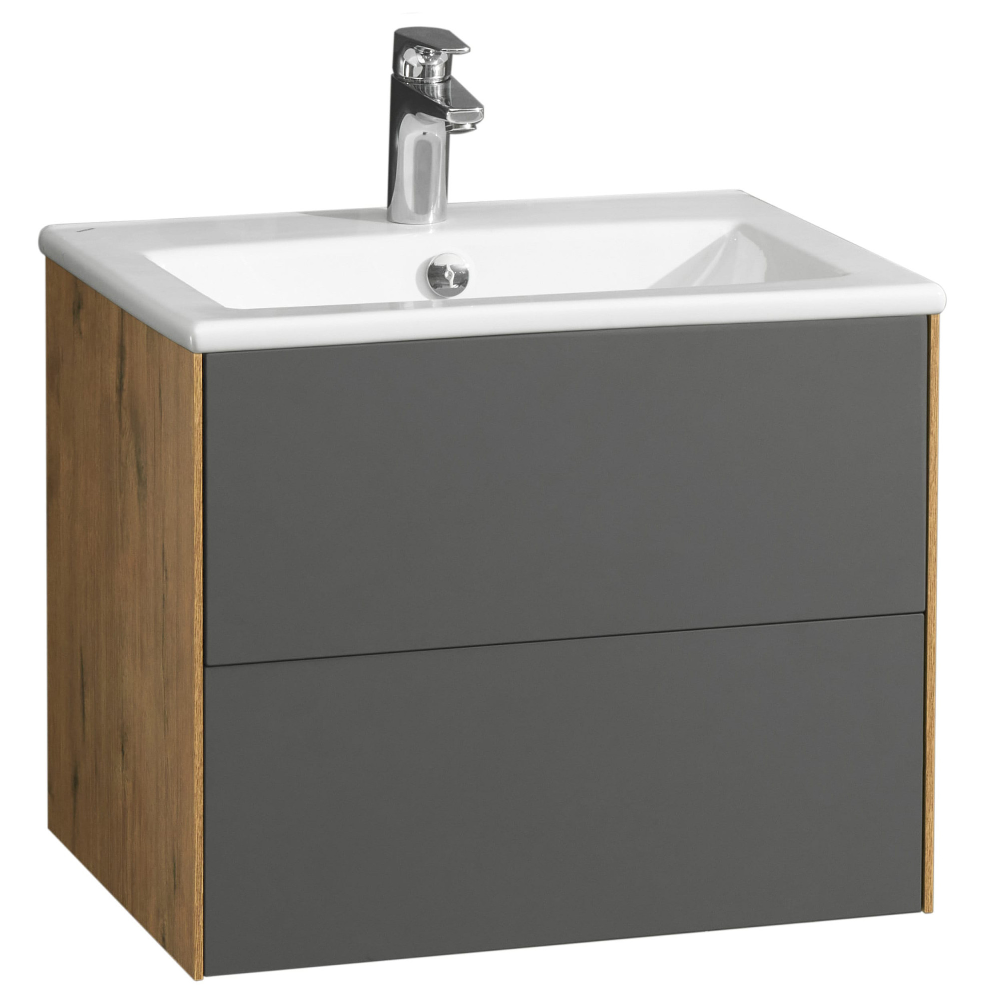 Тумба под раковину AQUATON Сохо 60 подвесная, графит софт / дуб веллингтон (1A258001AJA00)