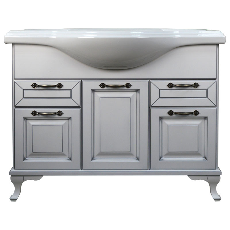 Комплект Пандора Тумба 1050 белое серебро (массив Бук) с раковиной Classic 105 (Кировит)