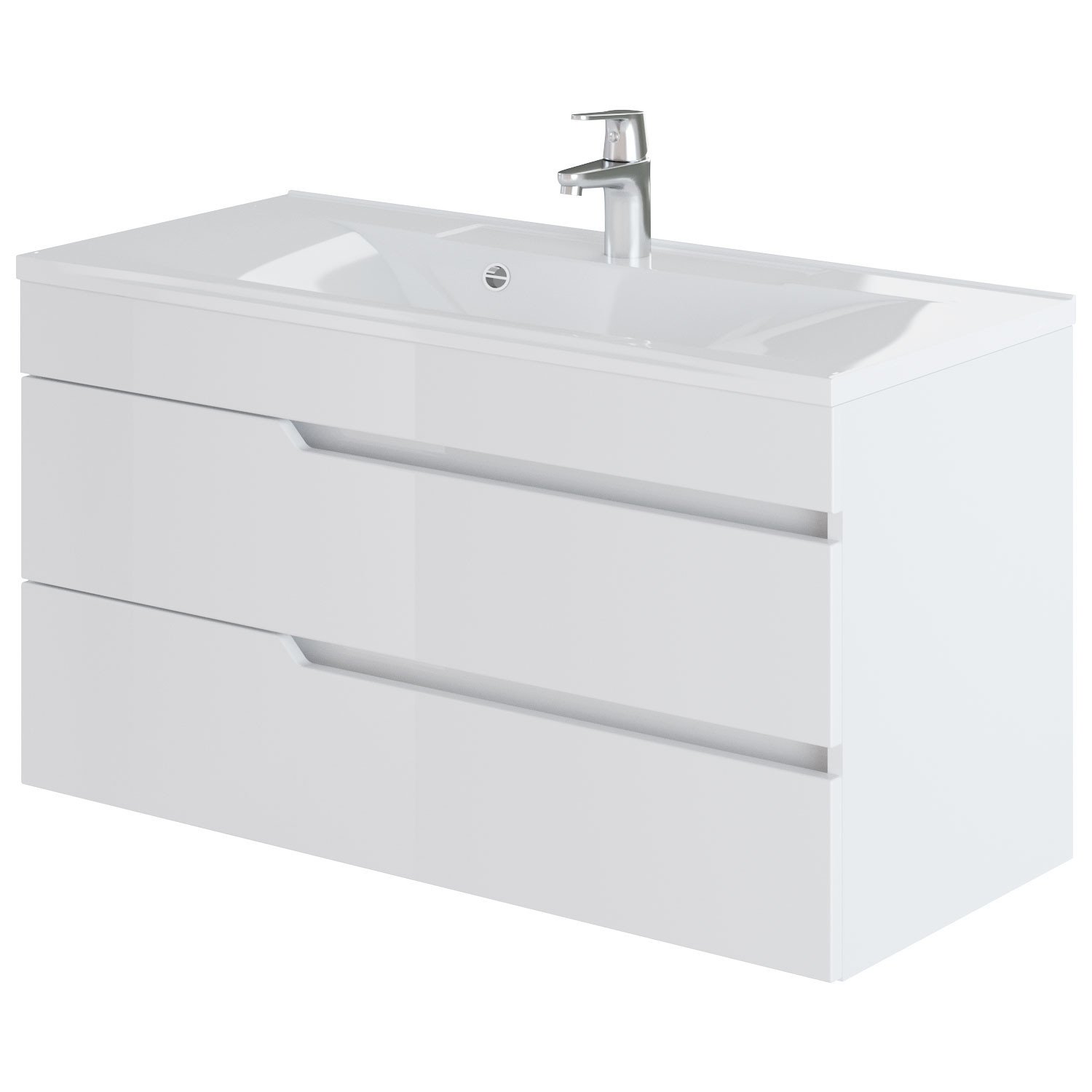 Комплект тумба подвесная Итана Александра 100 (990х444х551) с раковиной Milen 100, белый глянец (743283)
