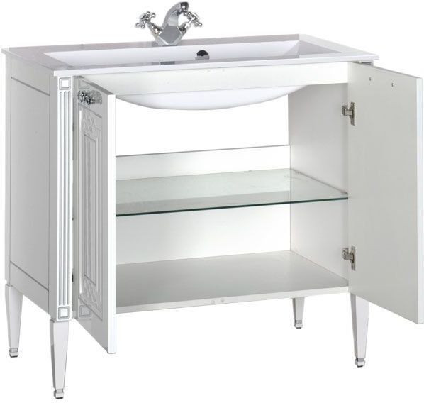 Тумба с раковиной Aquanet Паола 90 белый/серебро (литьевой мрамор)