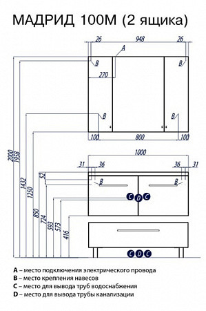 1A1280K4MA010 Набор: 1A128001MA010 Тумба-умывальник Мадрид 100 М 2 ящика / 1A723031AG010 Раковина Айрис 100