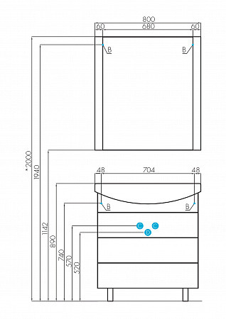 1A1413K0AA010 Набор: 1A141301AA010 Тумба-умывальник Ария 80 Н / 1WH207783 Раковина Смайл-80