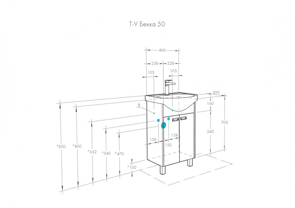 1A2108K1BAC20 Набор: 1A210801BAC20 Тумба-умывальник Бекка 50/ 1WH207781 Раковина Смайл 50